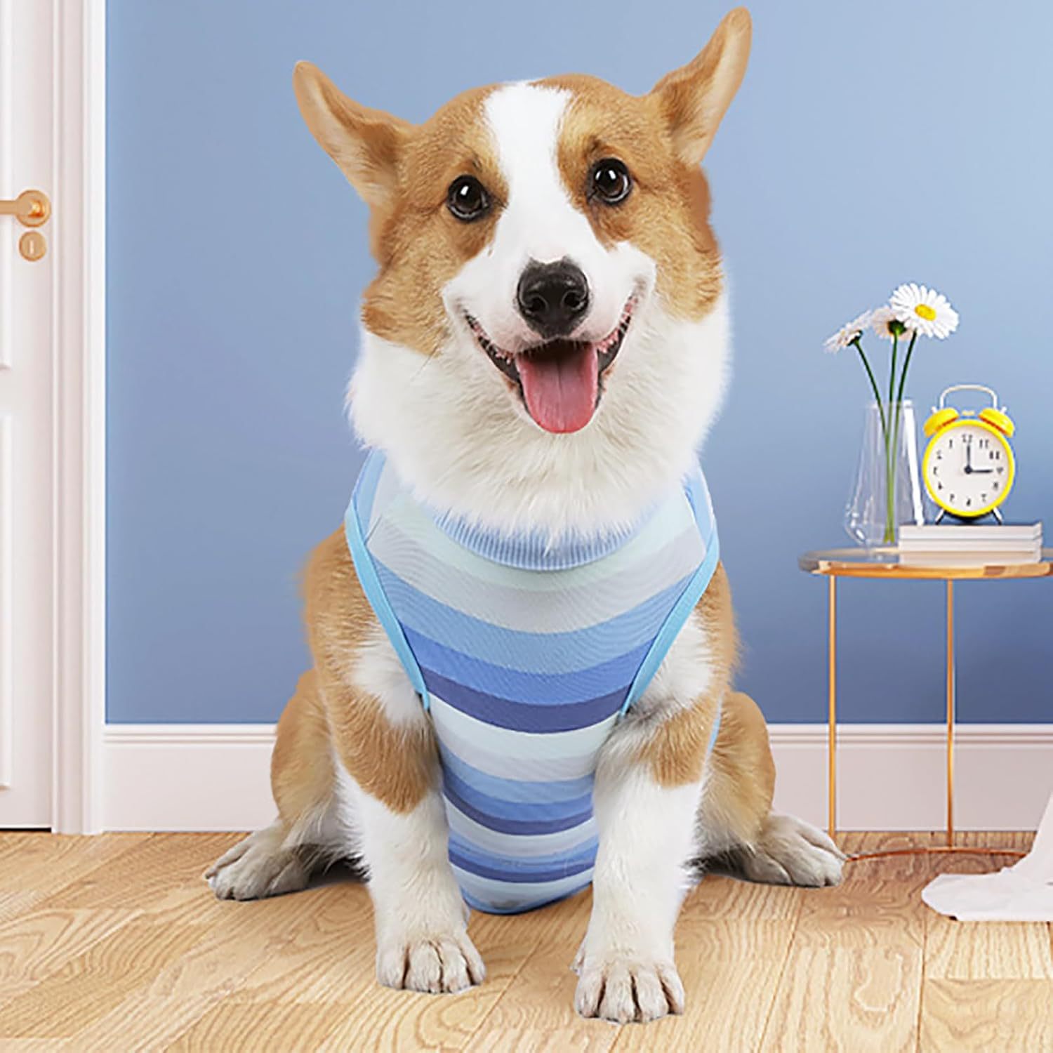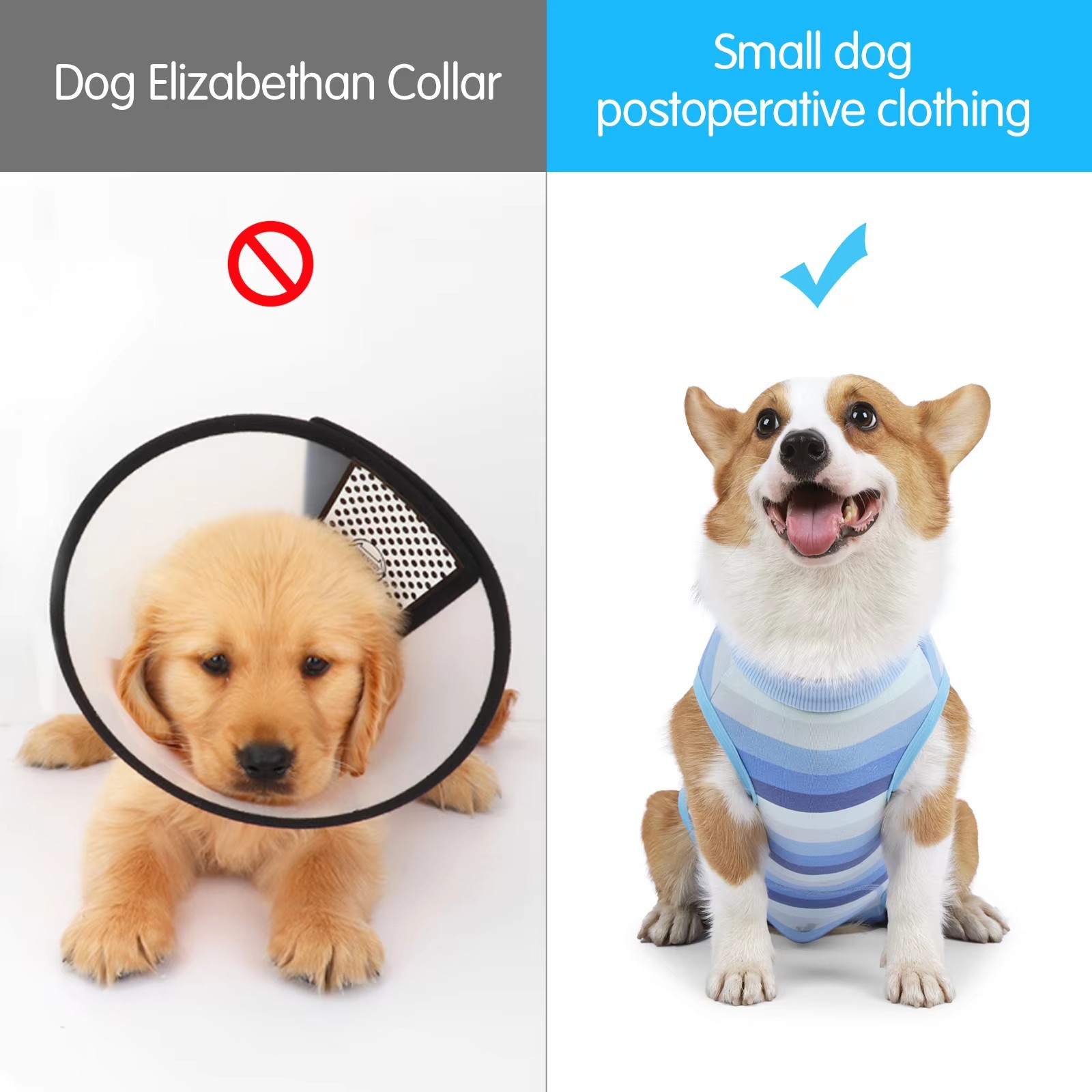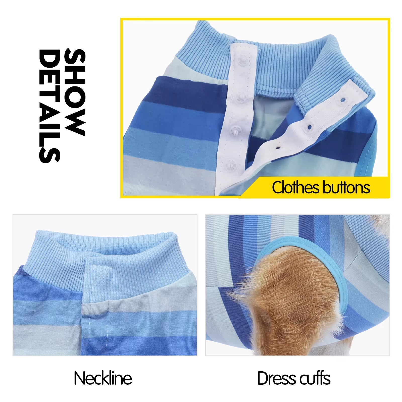 새로운 작은 개 수술 후 의류 개 살균 의류 국경 애완 동물 용품 애완 동물 의류 블루 스트라이프
