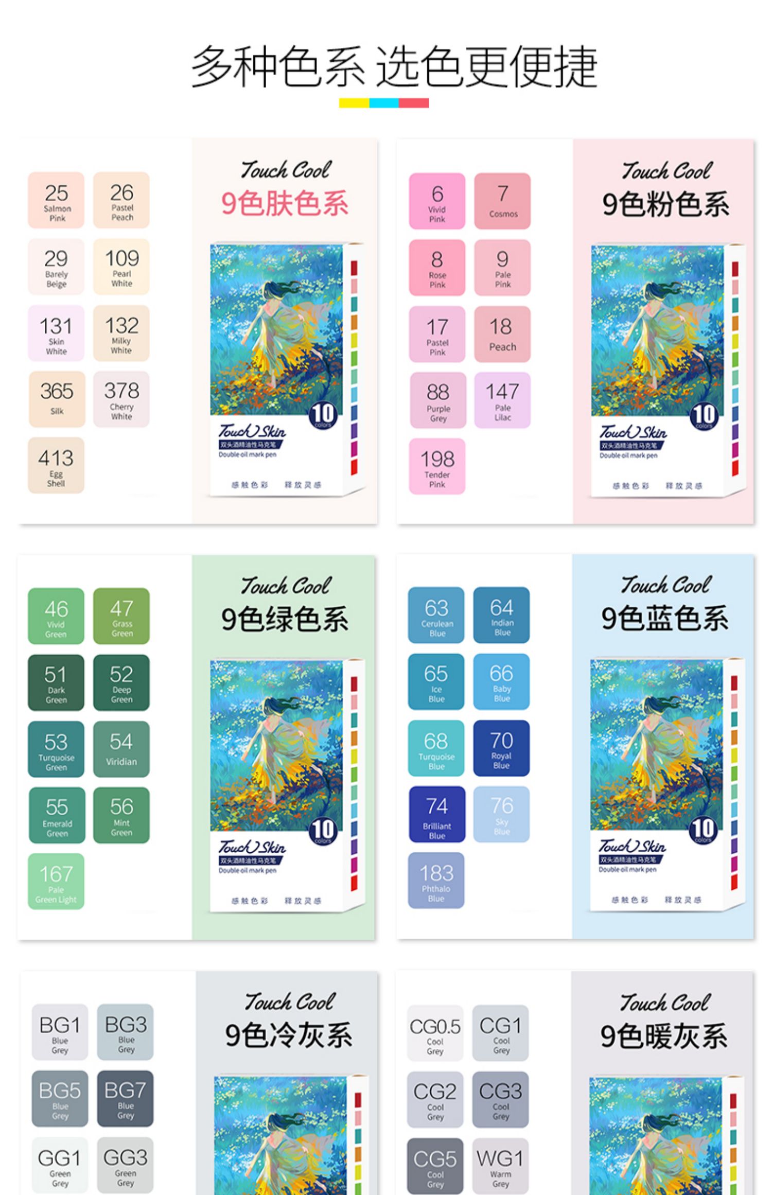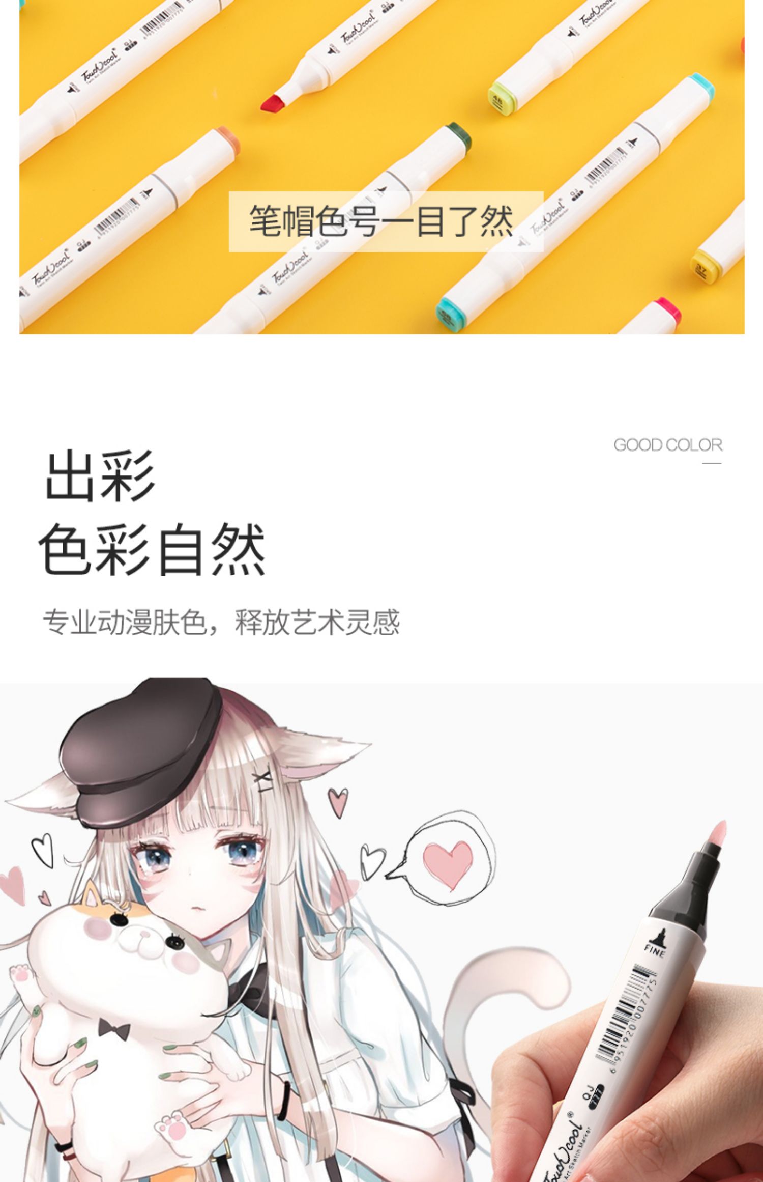 터치 마커 단일 스킨 컬러 부서 옵션 애니메이션 스킨 컬러 학생 아트 더블 헤드 수채화 펜 빛 살