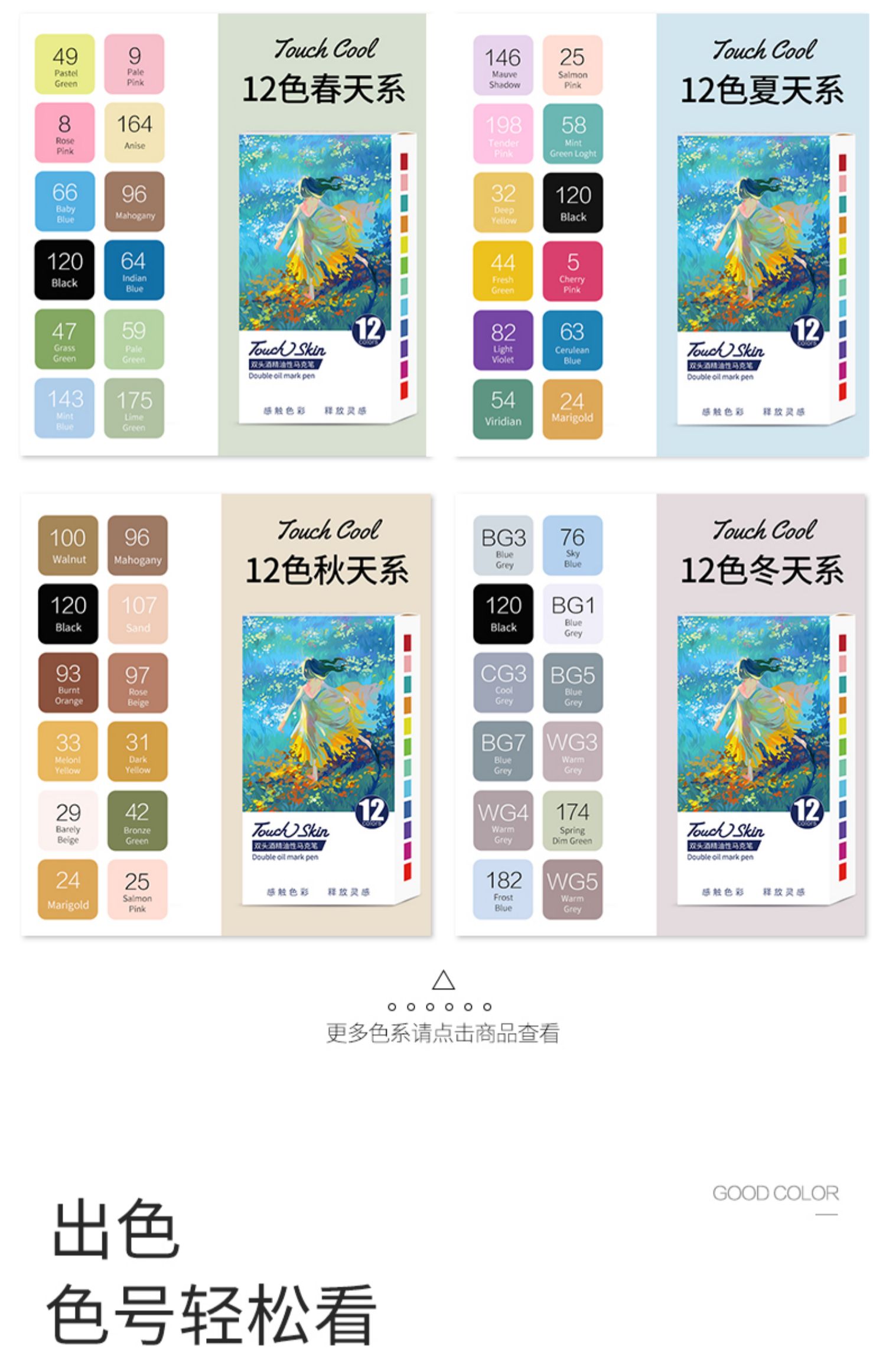 터치 마커 단일 스킨 컬러 부서 옵션 애니메이션 스킨 컬러 학생 아트 더블 헤드 수채화 펜 빛 살스토어 가기