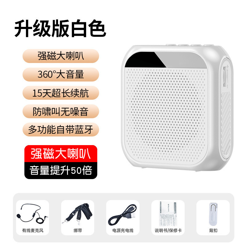 • 블루투스 버전 - 흰색 [강력한 자기 스피커 √ 블루투스 포함 √ 50배 볼륨 √ 하울링 방지