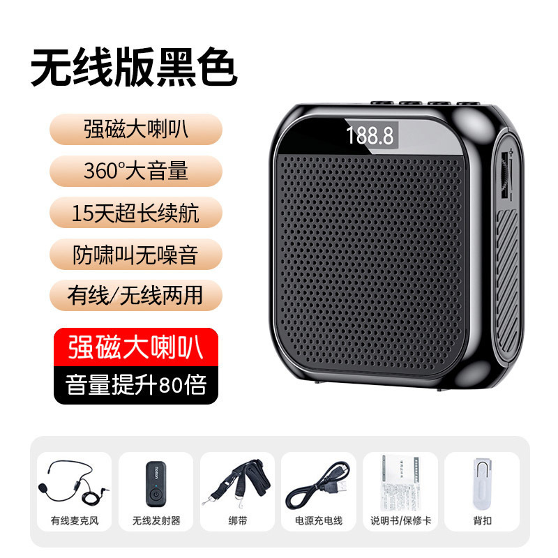 • 블루투스 버전 - 블랙 [강력한 자기 스피커 √ 블루투스 포함 √ 50배 볼륨 √ 하울링 방지