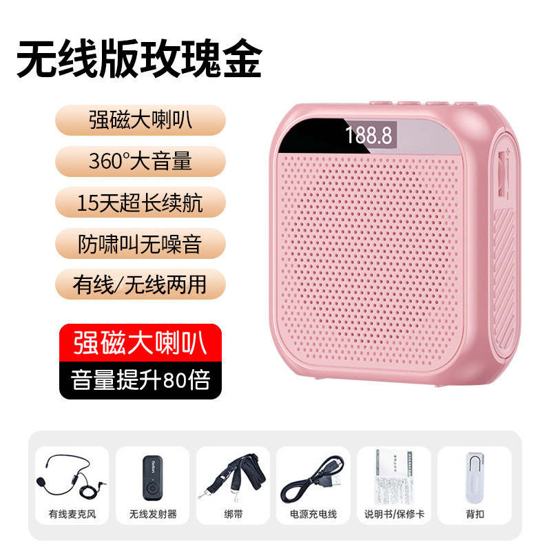 • 녹음 버전 - 로즈 골드 [LED 스크린 디스플레이 √ U 디스크/메모리 카드 지원 √ 50배 볼륨 √