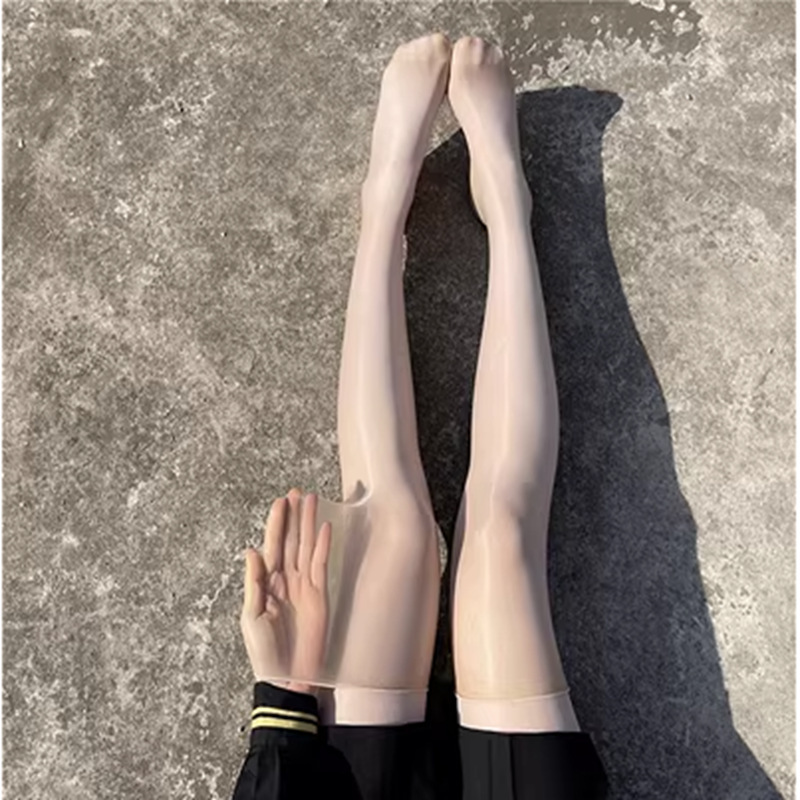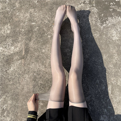화이트 실크 스타킹 얇은 오일 오버 더 니 스타킹 Rimless 일본 허벅지 스타킹 여성의 초박형 오일 샤이 니 스타킹 말 오일 하이 스타킹스토어 가기