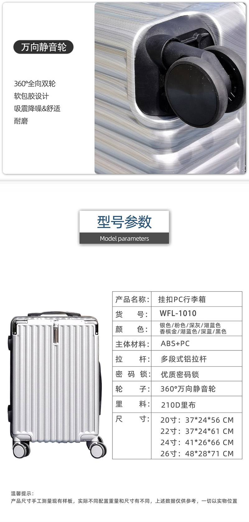 Wen Feng 수하물 부드러운 pc 지퍼 케이스 유니버설 휠 알루미늄 풀로드 수하물 케이스 아래 20 인치 휴대용 등록스토어 가기