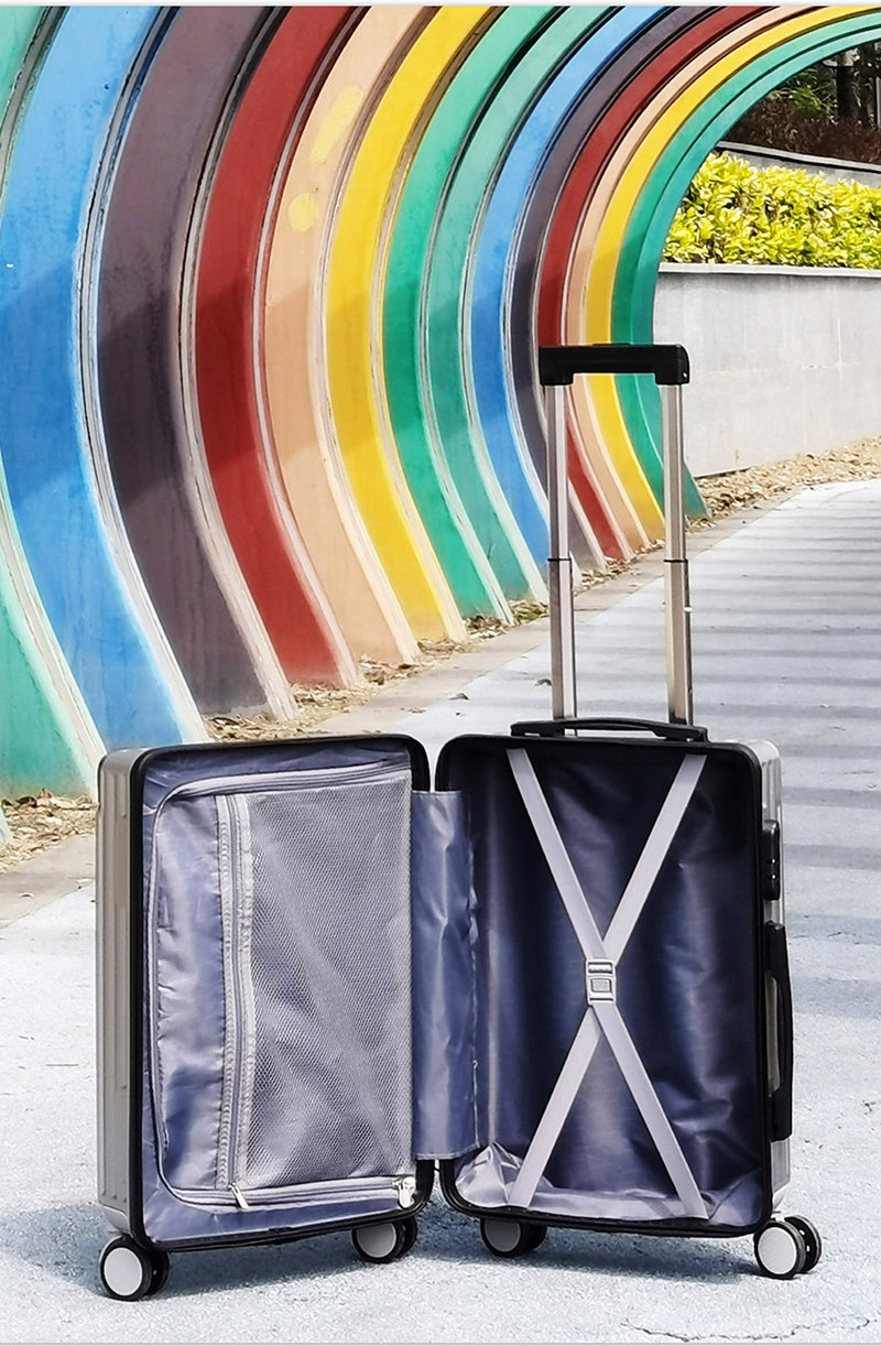 Wen Feng 수하물 부드러운 pc 지퍼 케이스 유니버설 휠 알루미늄 풀로드 수하물 케이스 아래 20 인치 휴대용 등록