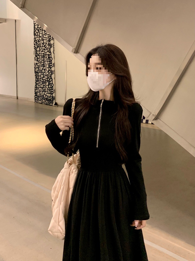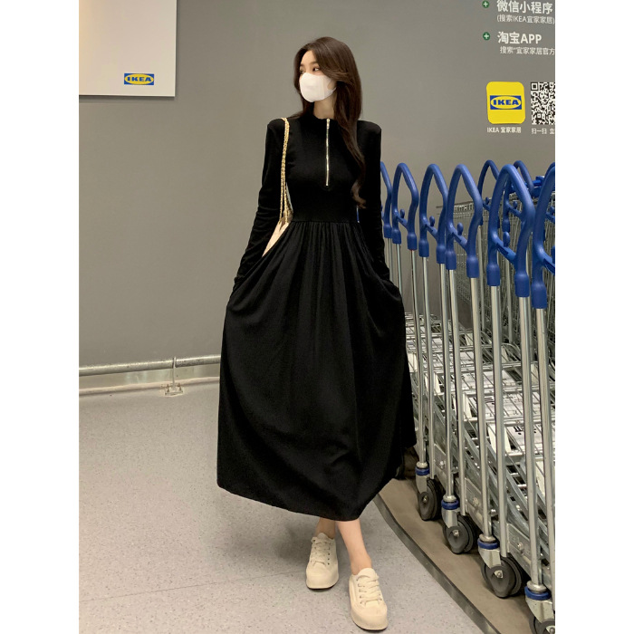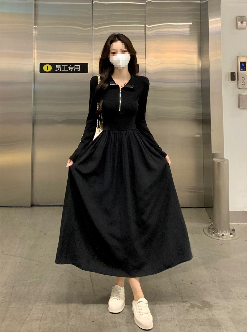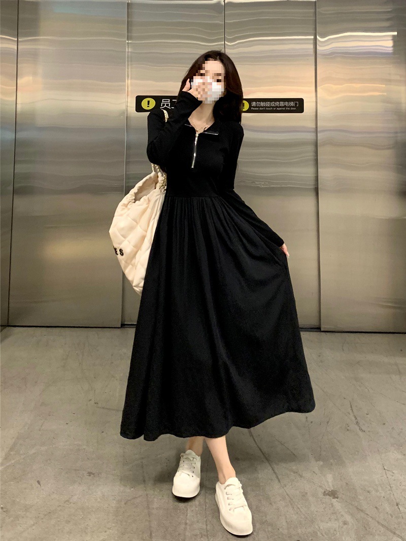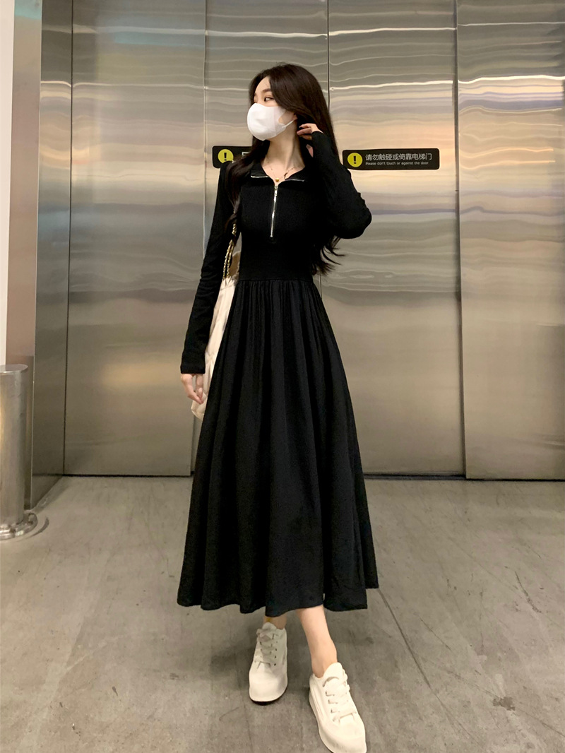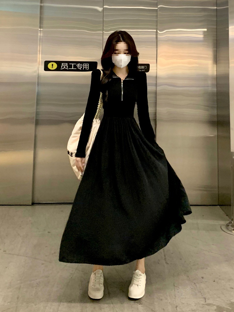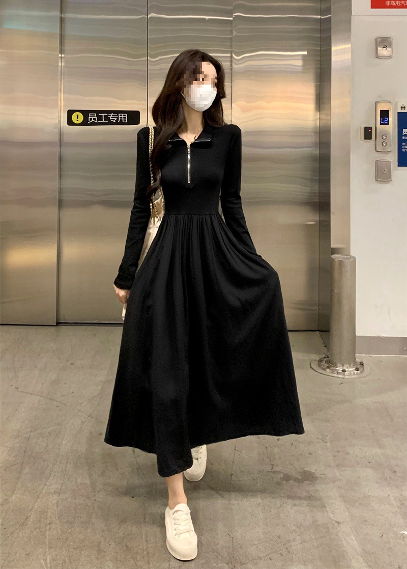 국경 도매 봄과 가을 v-neck 인테리어 슬림 핏 느슨한 긴 소매 원피스 여성의 기질 허리 원피스