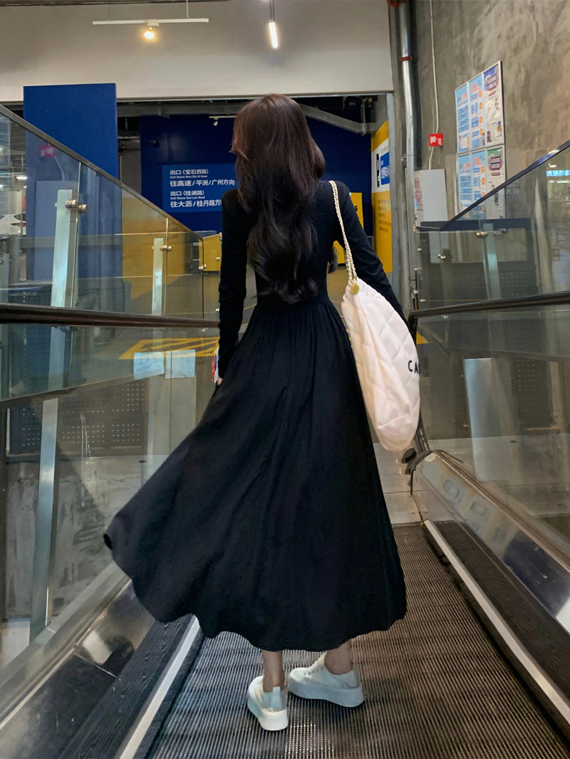 국경 도매 봄과 가을 v-neck 인테리어 슬림 핏 느슨한 긴 소매 원피스 여성의 기질 허리 원피스스토어 가기