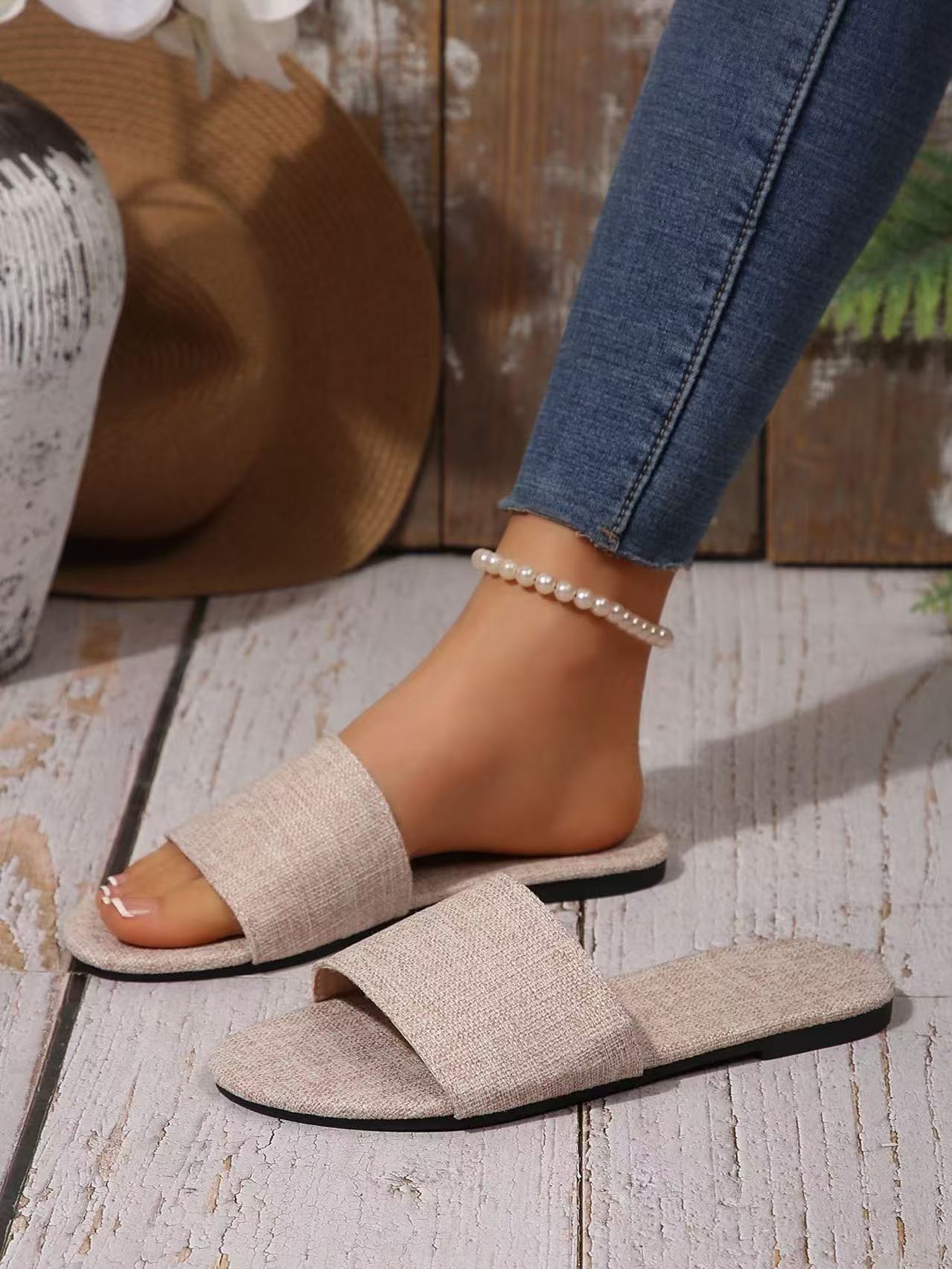 여성용 플러스 사이즈 플랫 슬리퍼 외부 착용 2025 새로운 여름 솔리드 컬러 플랫 힐 캐주얼 비치 샌들 및 슬리퍼