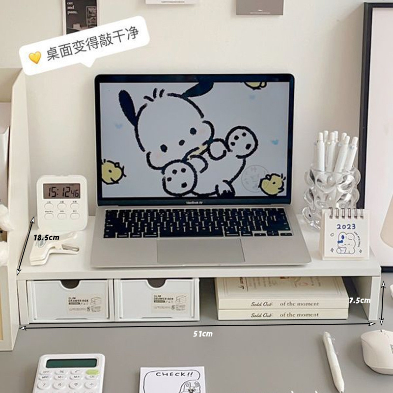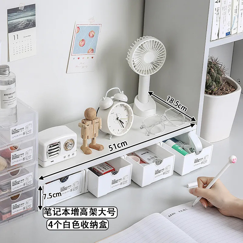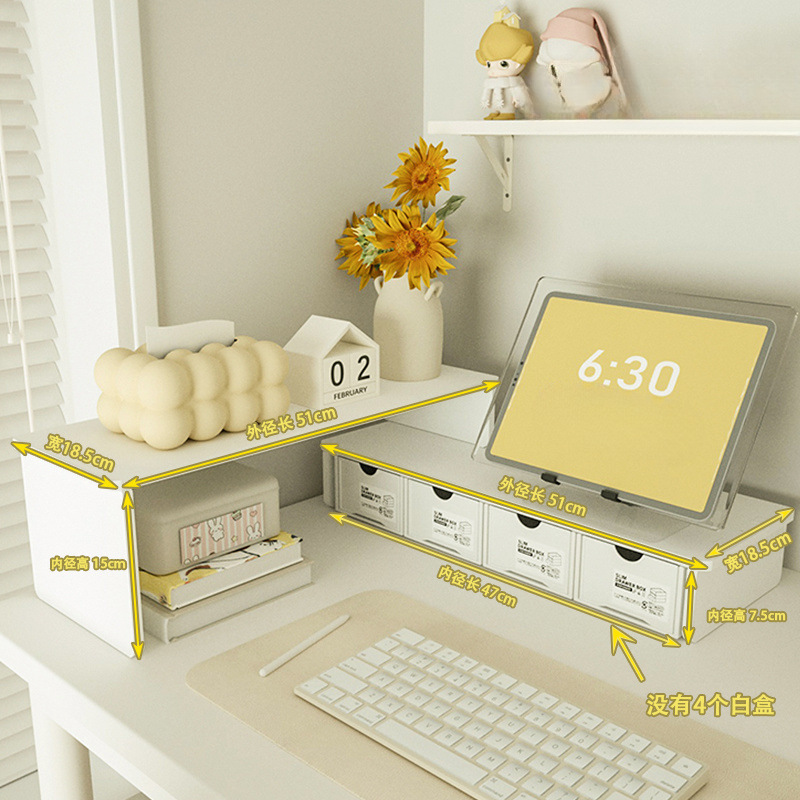 • 업그레이드된 두꺼운 이중층 컴퓨터 높이 프레임 + 흰색 서랍 상자*4
