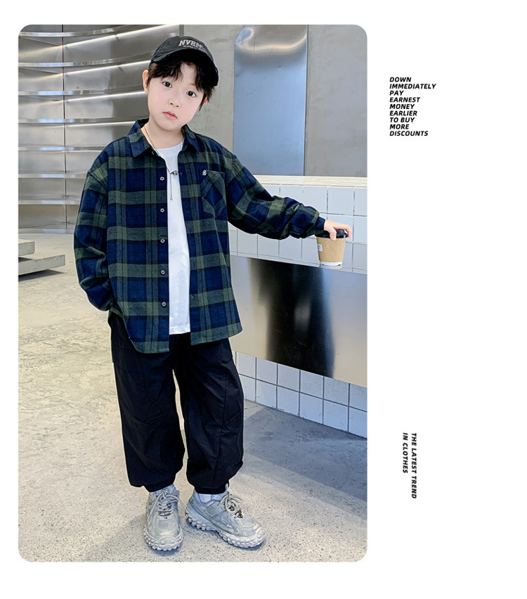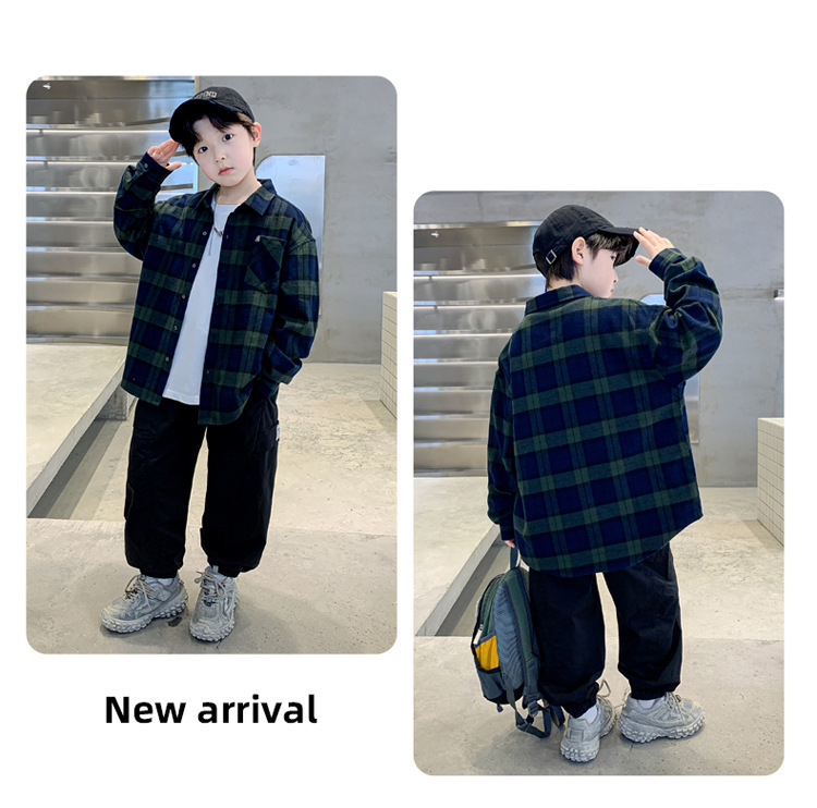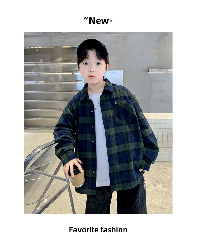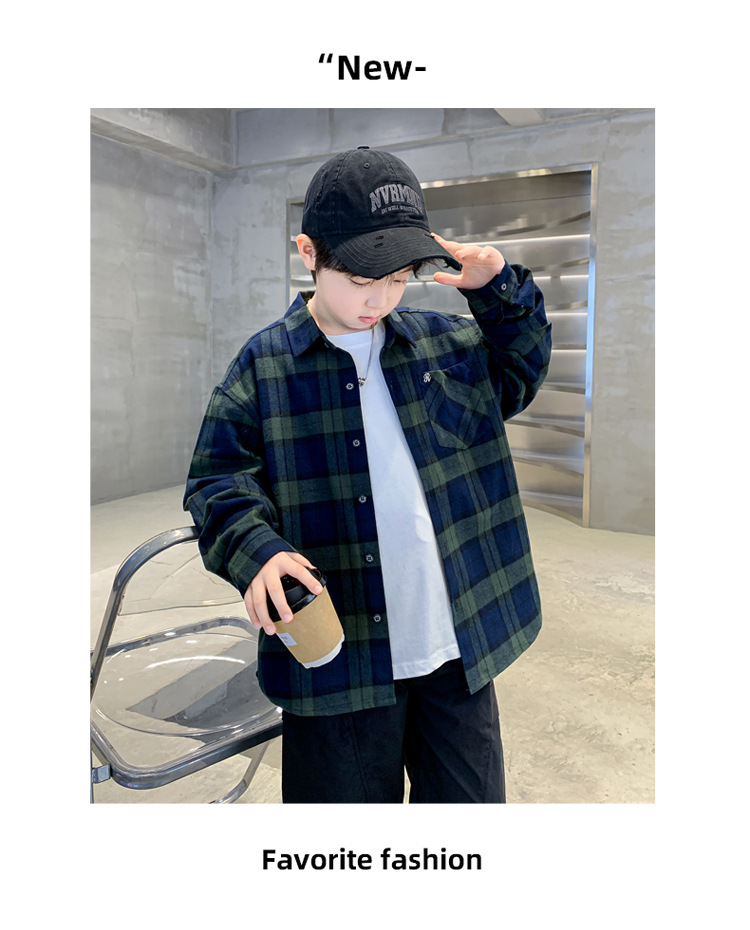 소년의 봄 격자 무늬 셔츠 코트 2025 새로운 큰 어린이 서양식 캐주얼 재킷 윈드 브레이커 봄과 가을 도매스토어 가기