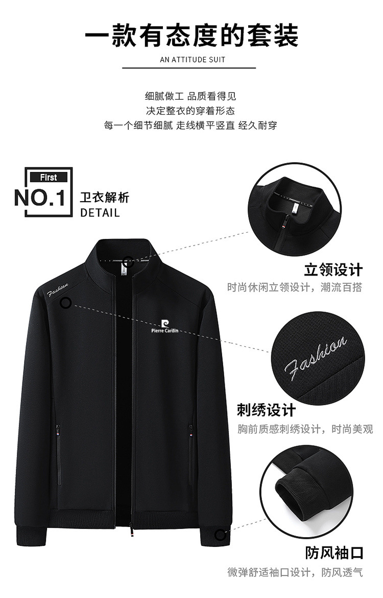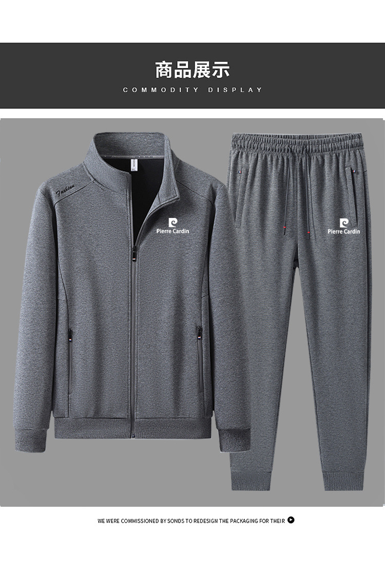 피에르 카딘 캐주얼 세트 남성 봄과 가을 스포츠 세트 패션 칼라 하이 엔드 아빠 투피스 세트