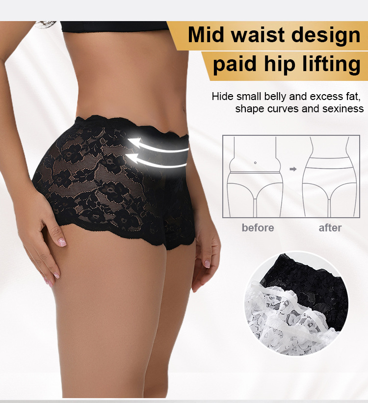 대외 무역 플러스 사이즈 레이스 복서 여성 팬티 세트 높은 허리 섹시한 반바지 4 코너 안티 워킹 팬티 크로스 국경