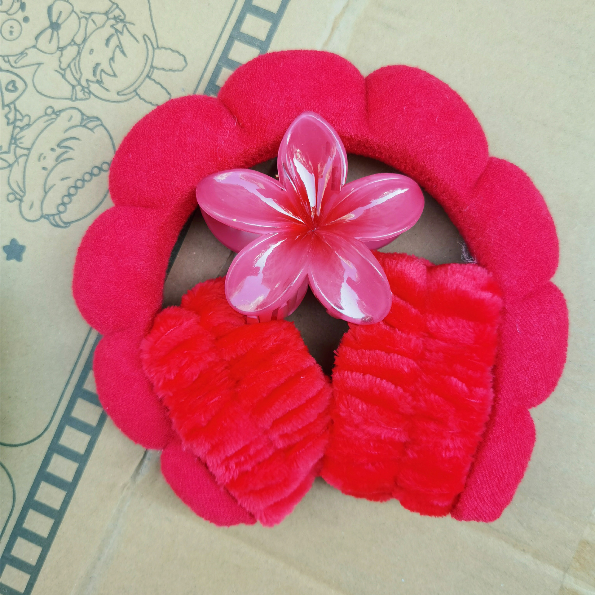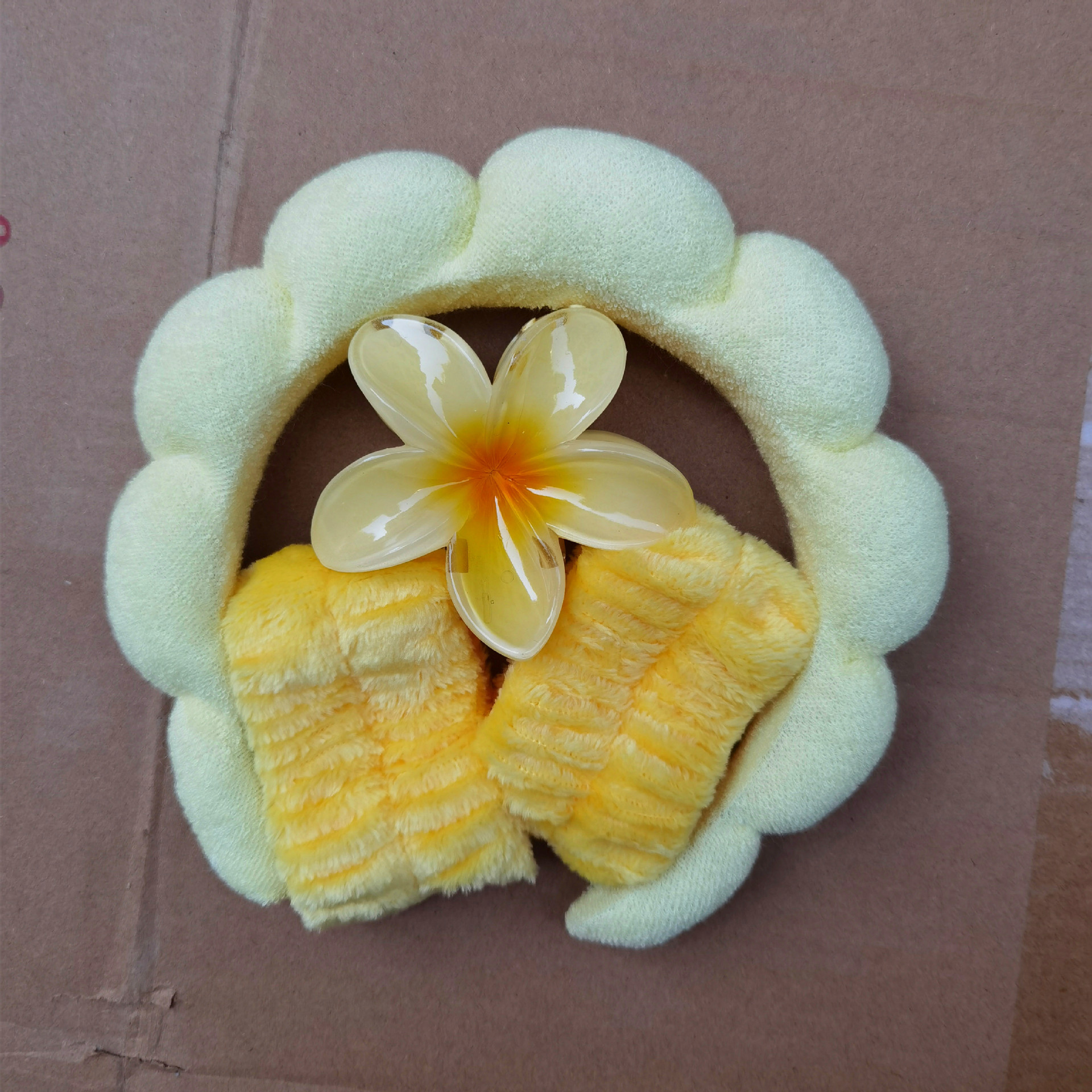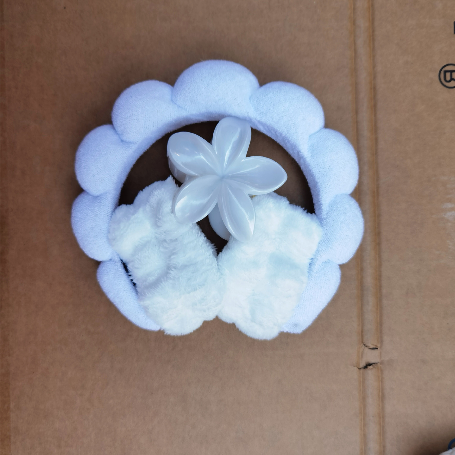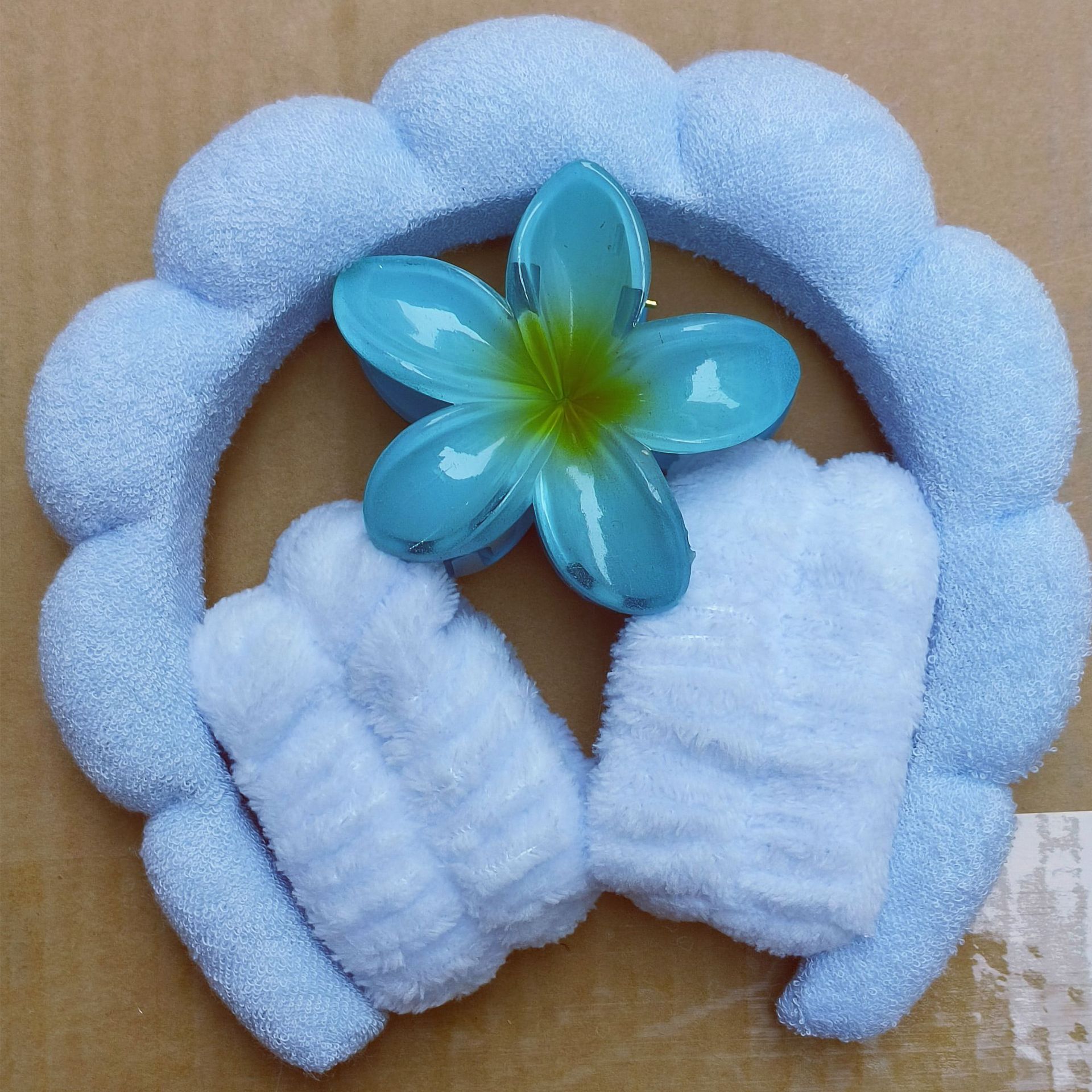 국경 간 플루 메리아 버블 플란넬 스폰지 페이스 워시 방수 헤어핀 세트 클라우드 머리띠 헤어 액세서리