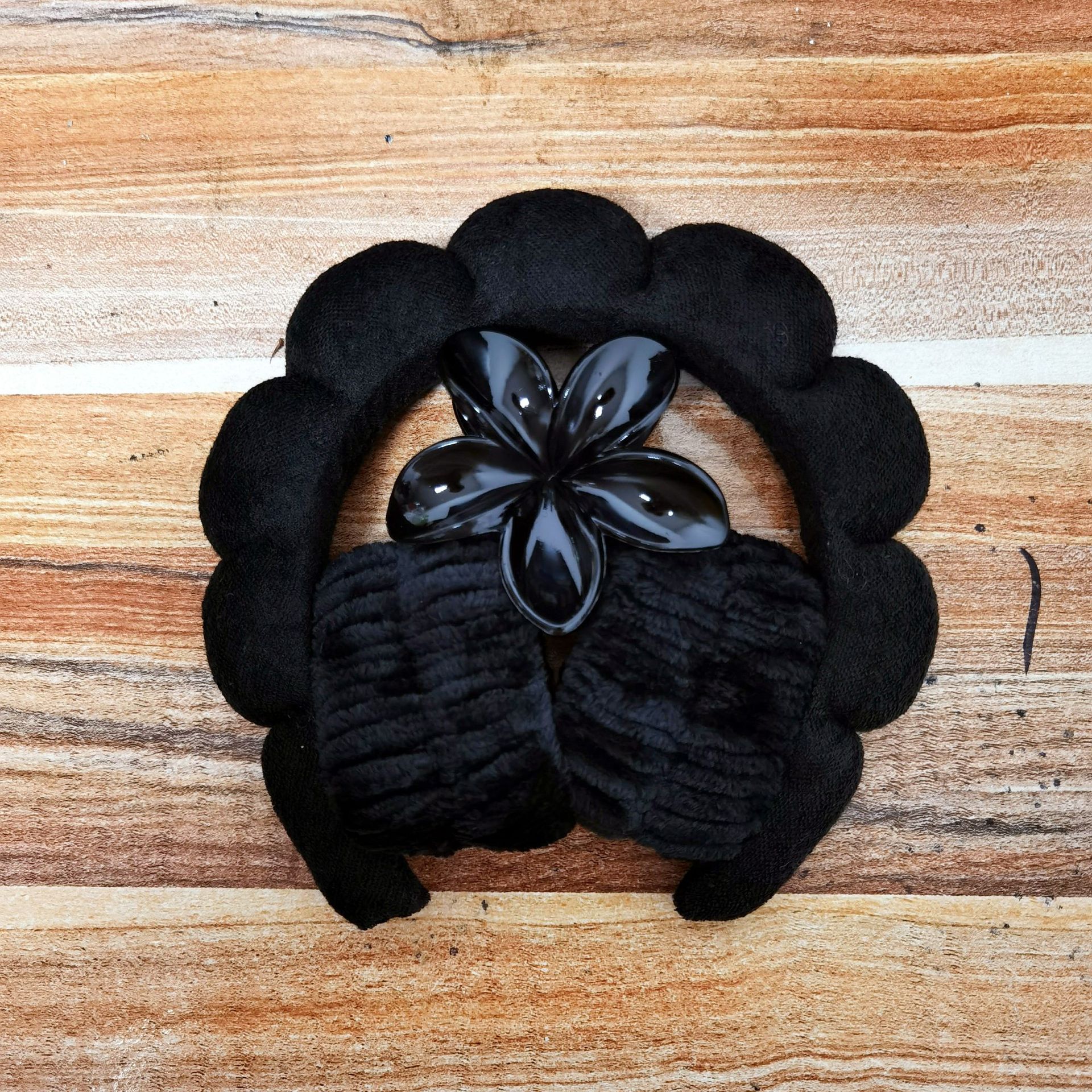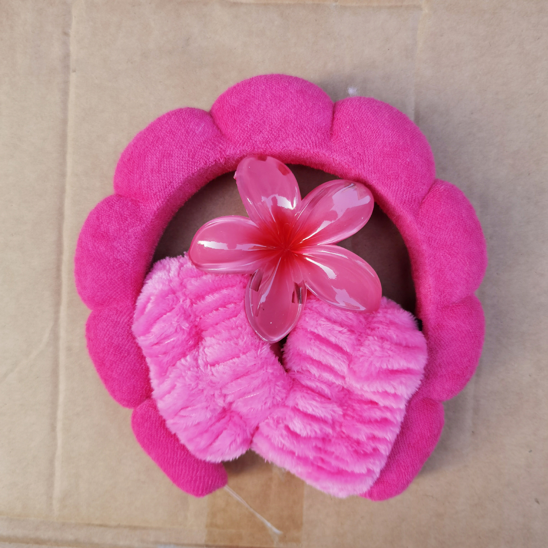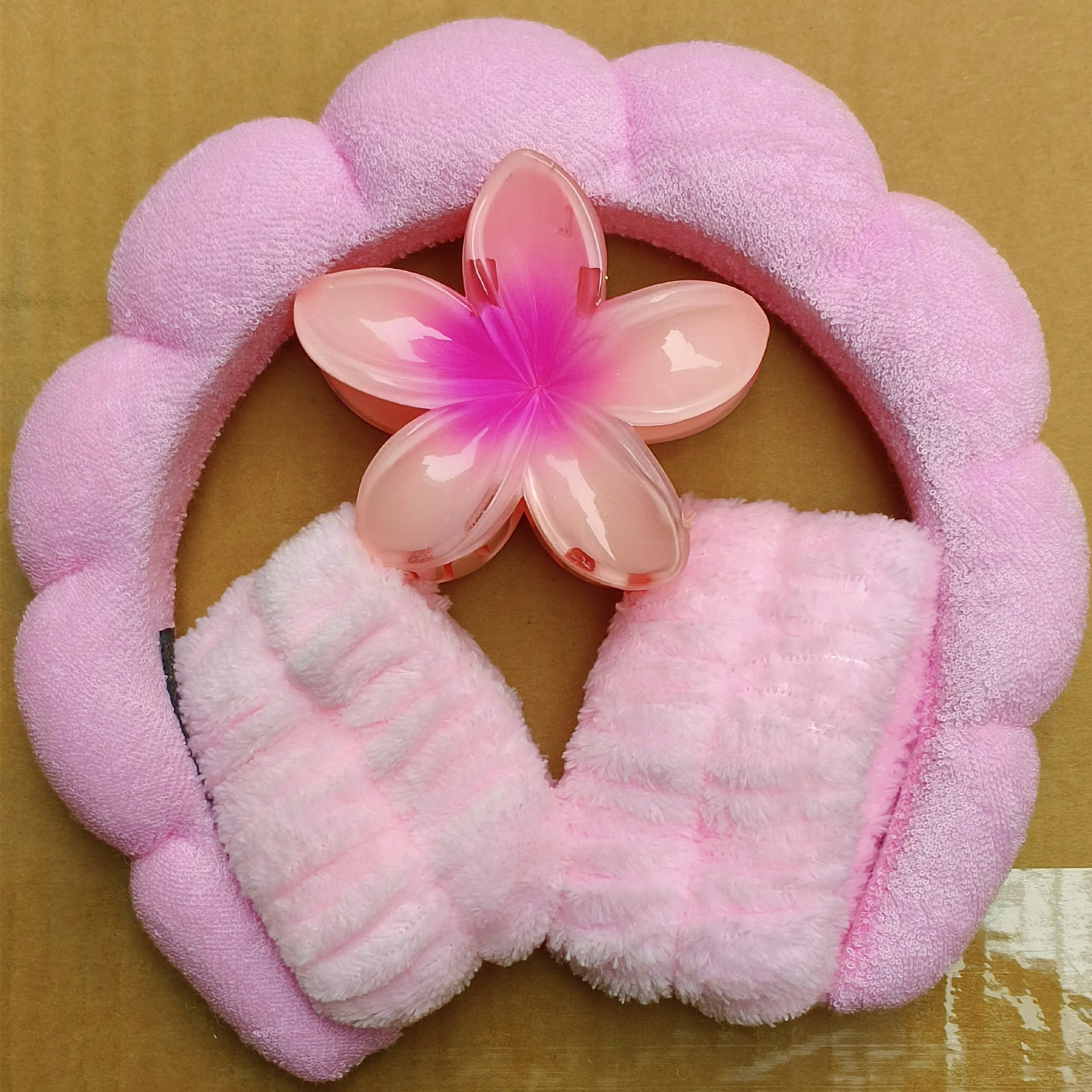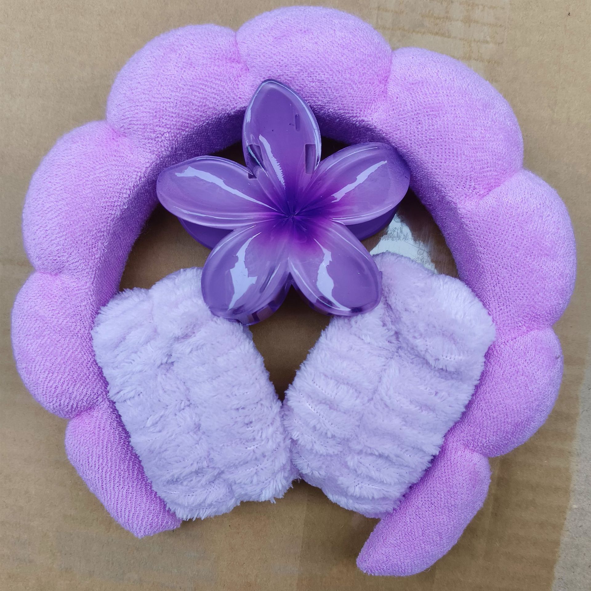 국경 간 플루 메리아 버블 플란넬 스폰지 페이스 워시 방수 헤어핀 세트 클라우드 머리띠 헤어 액세서리