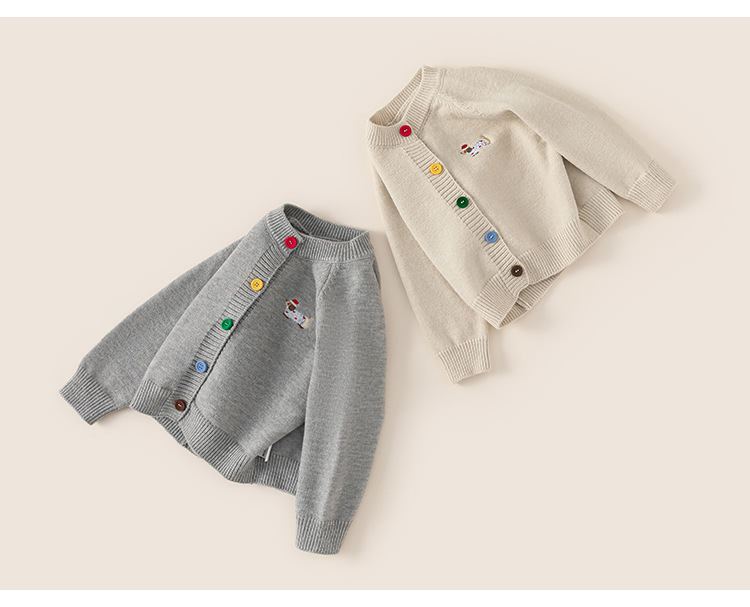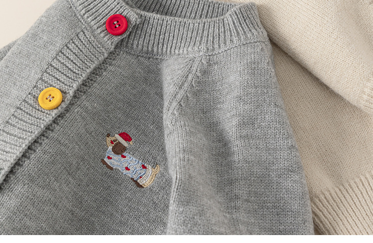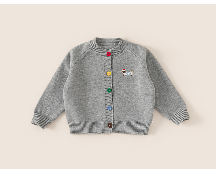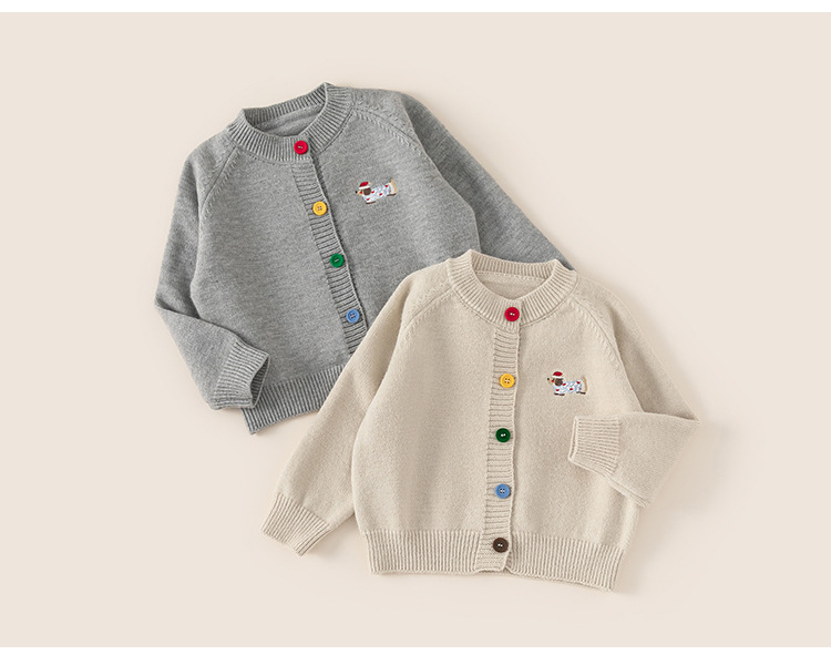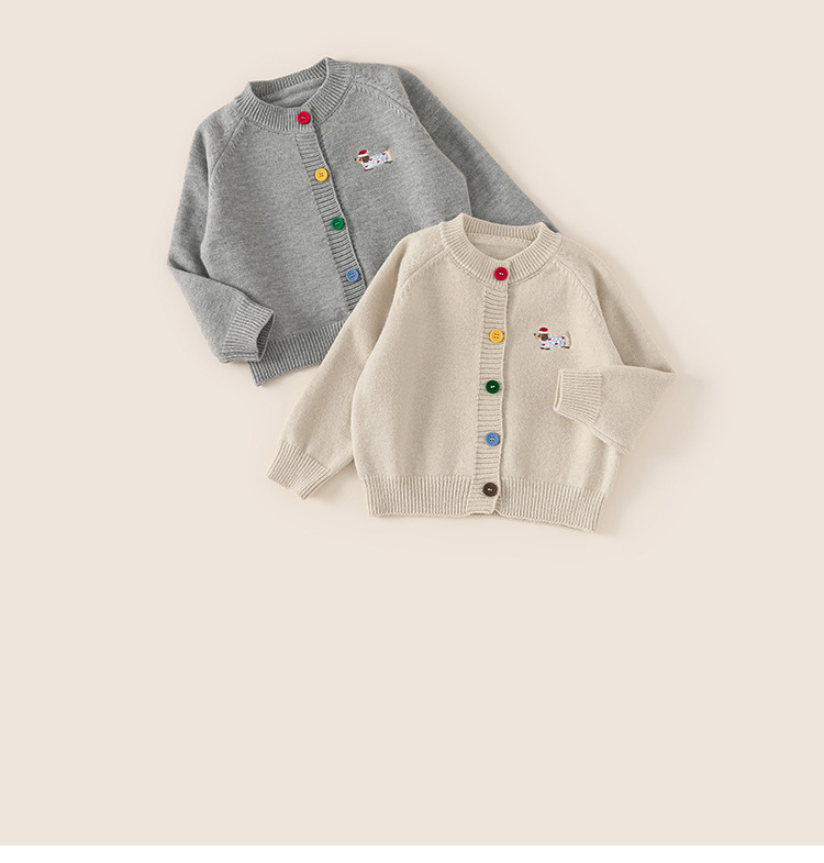 Bangxuan 아동 의류 라운드 넥 탑 어린이 강아지 수 놓은 스웨터 다채로운 버튼 카디건 소녀 가을 스웨터