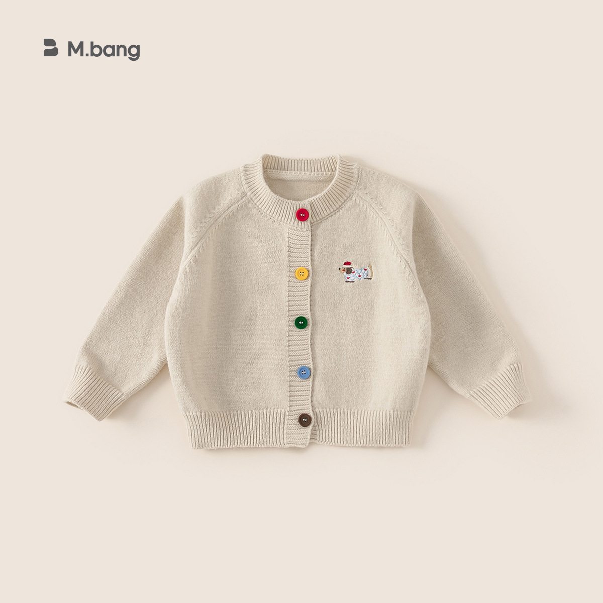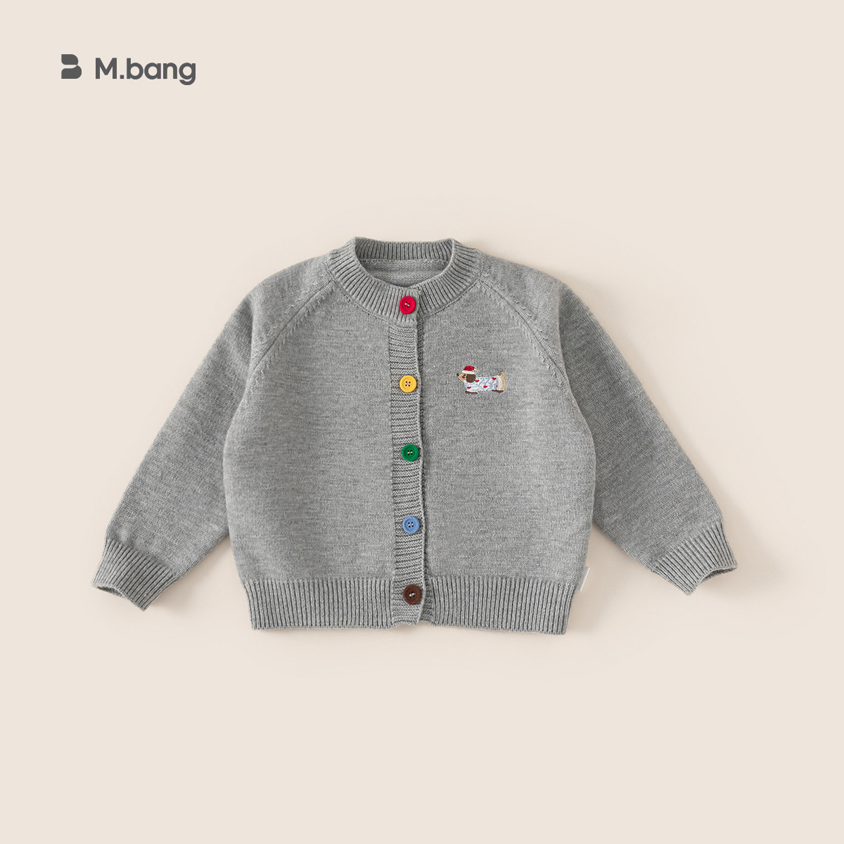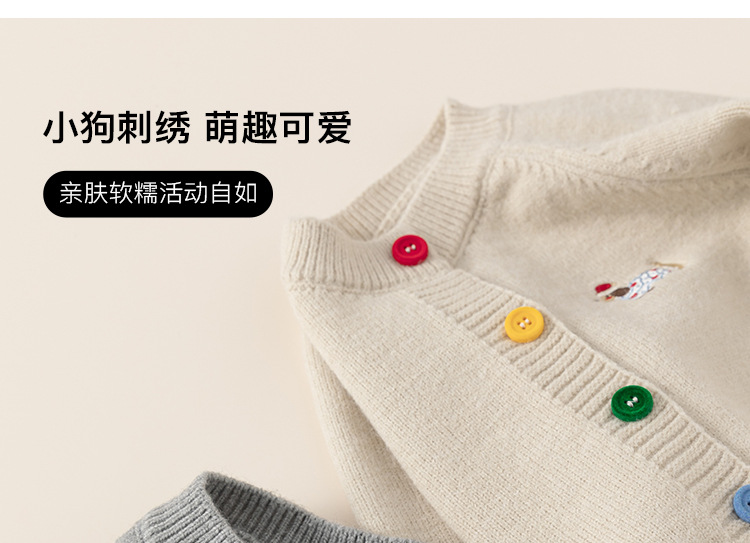 Bangxuan 아동 의류 라운드 넥 탑 어린이 강아지 수 놓은 스웨터 다채로운 버튼 카디건 소녀 가을 스웨터스토어 가기