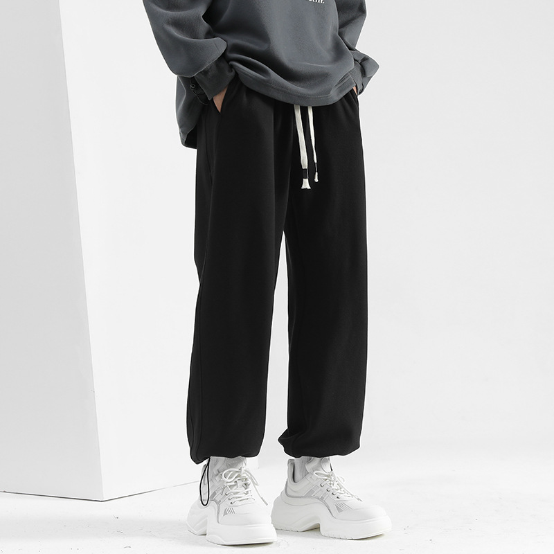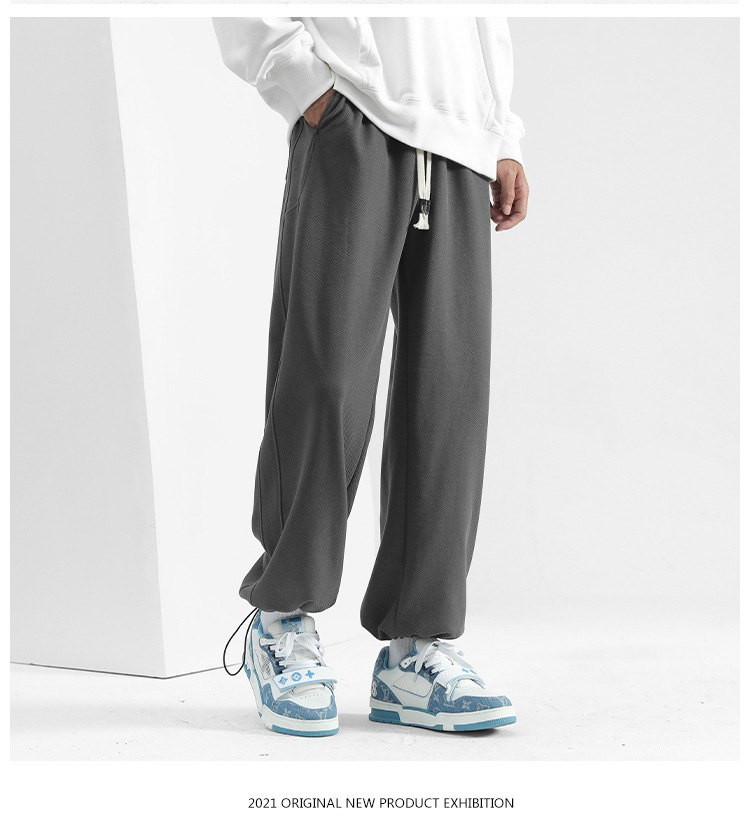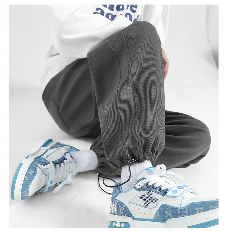 남성용 조임끈 바지 봄 가을용 루즈핏 스트레이트 캐주얼 롱팬츠 발목 조임 운동복 바지 남성용 와이드 팬츠 여름 스포츠 바지