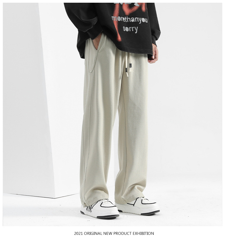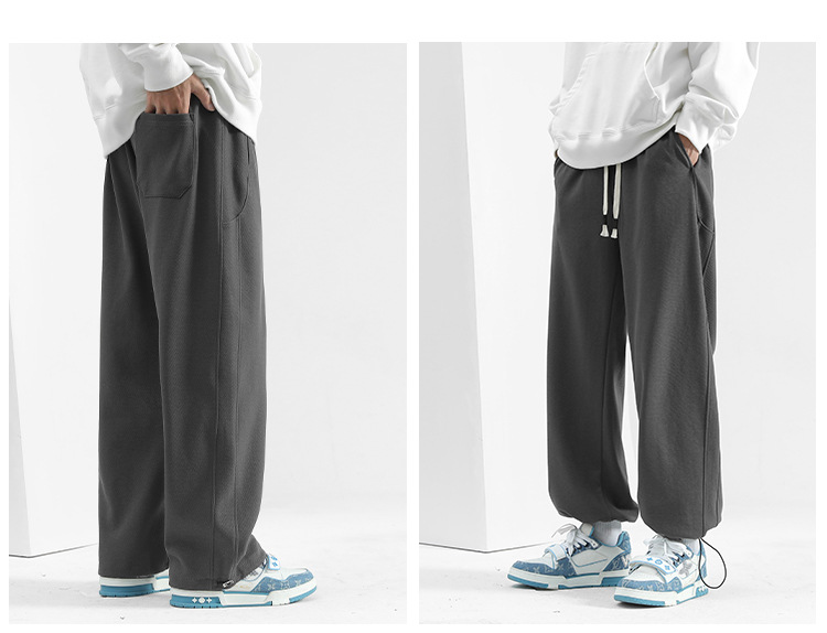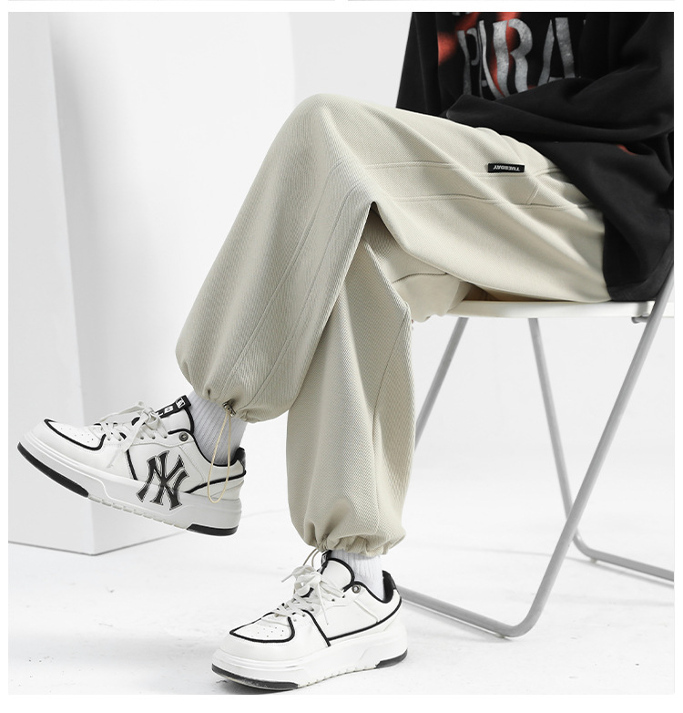 남성용 조임끈 바지 봄 가을용 루즈핏 스트레이트 캐주얼 롱팬츠 발목 조임 운동복 바지 남성용 와이드 팬츠 여름 스포츠 바지스토어 가기