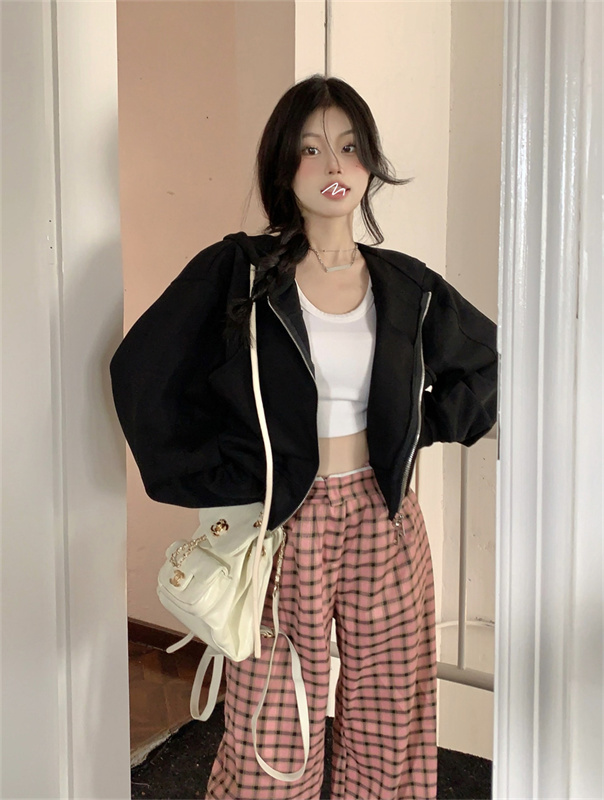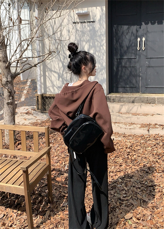 짧은 후드 스웨트 코트 여성의 봄과 가을 얇은 한국 스타일 2025 새로운 뜨거운 소녀 디자인 감각 느슨한 끈 긴 소매스토어 가기