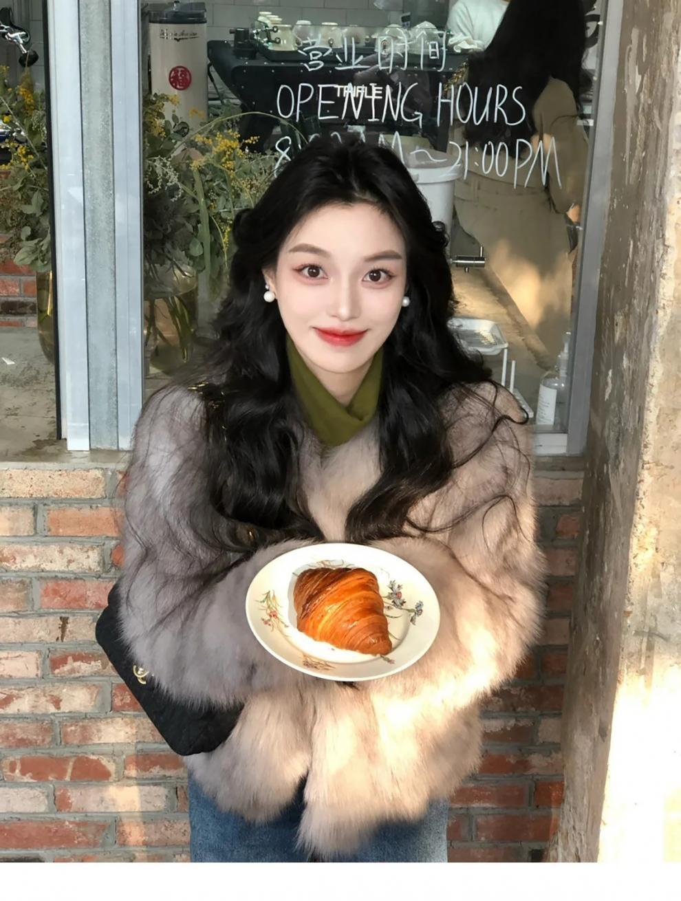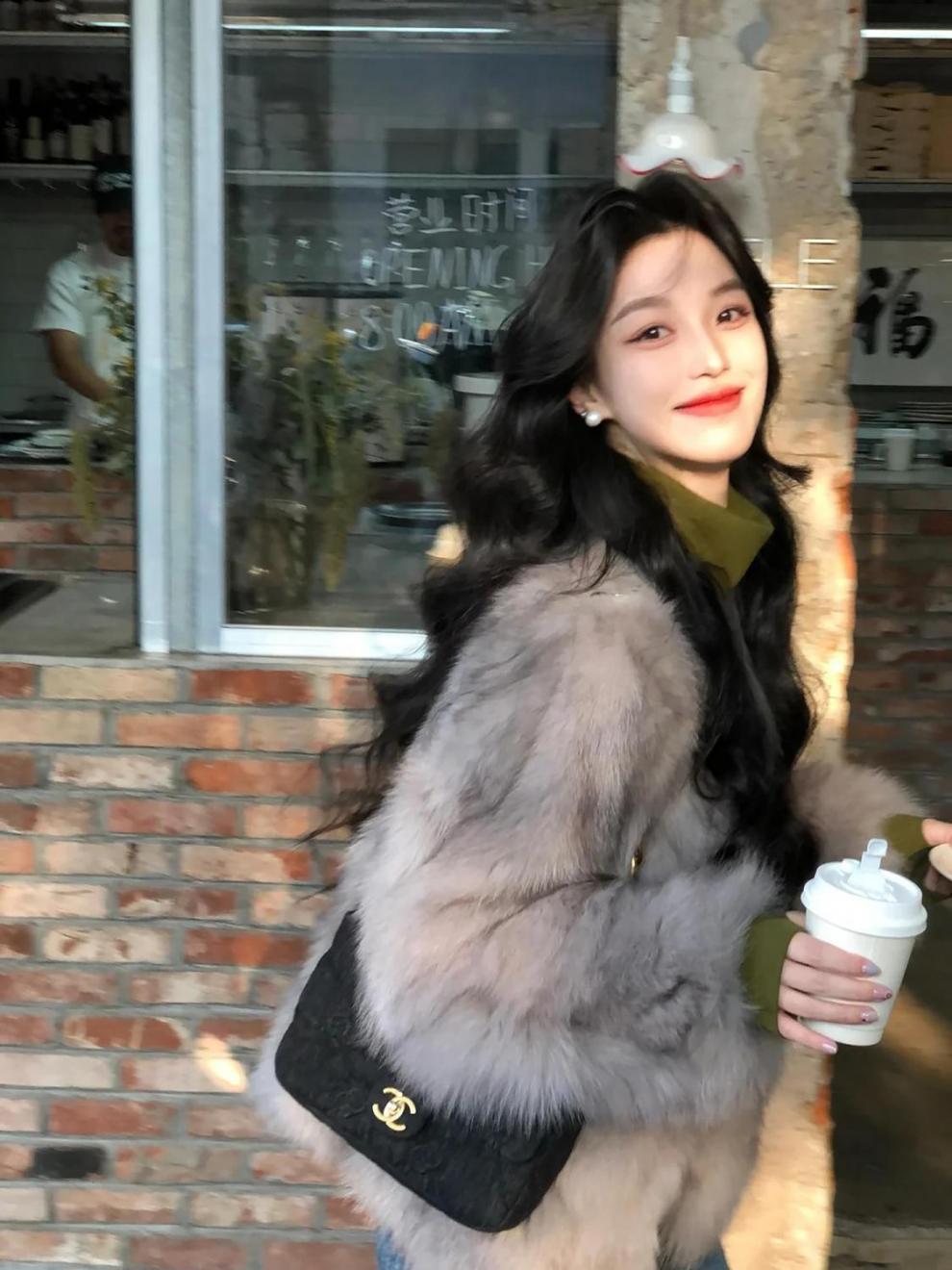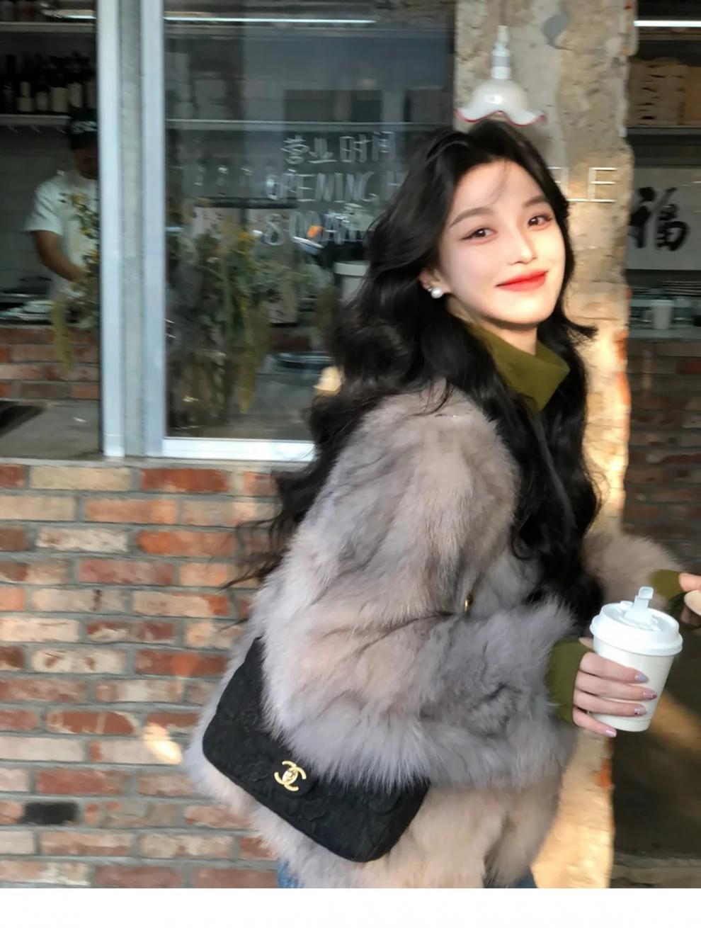 여성을위한 회색 모피 원피스 모피 짧은 코트 2024 겨울 새로운 스타일 하이 엔드 패션 다목적 패션 캐주얼스토어 가기