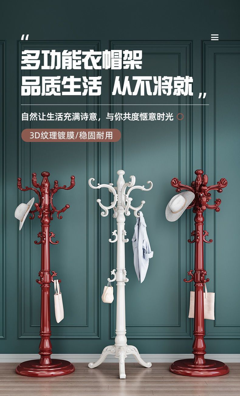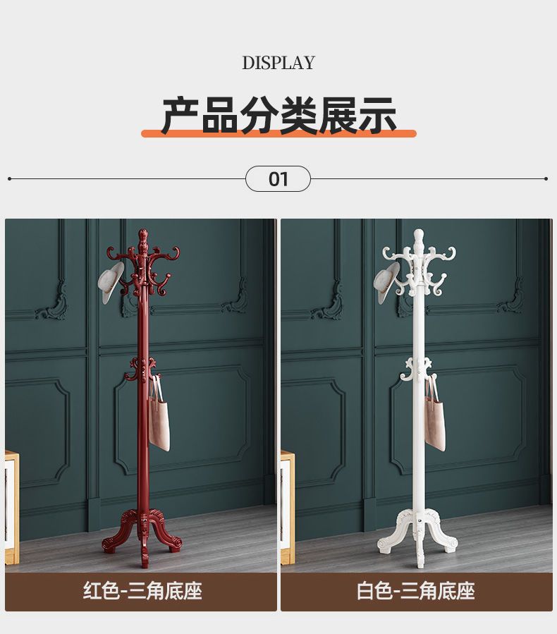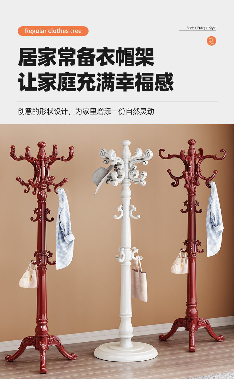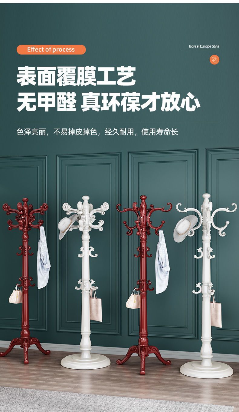 단단한 나무 옷 옷걸이 유럽 스타일 코트 랙 바닥 가구 옷 교수형 가방 랙 간단한 현대 침실 랙스토어 가기