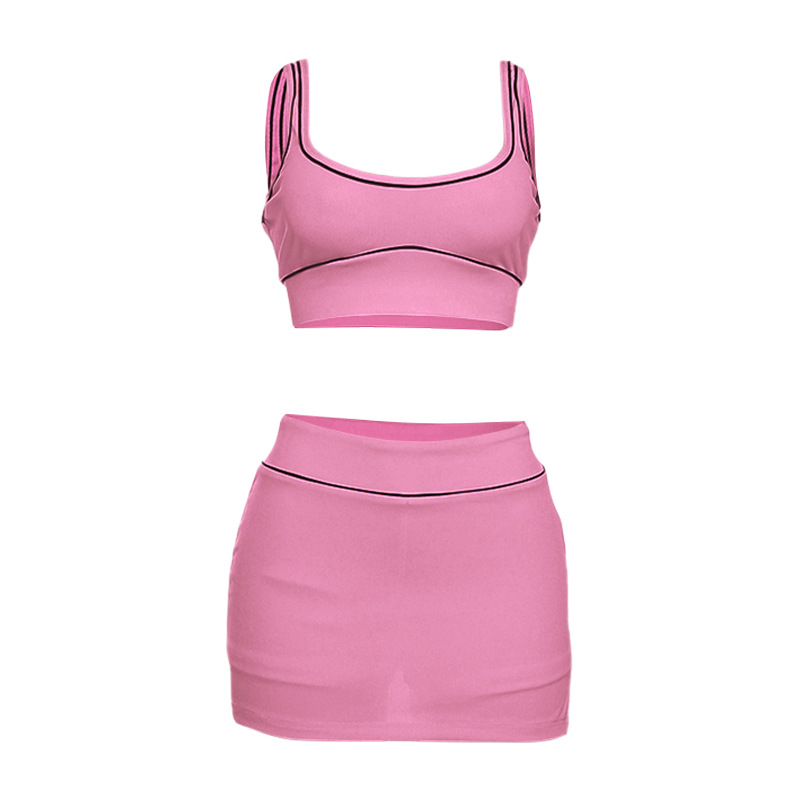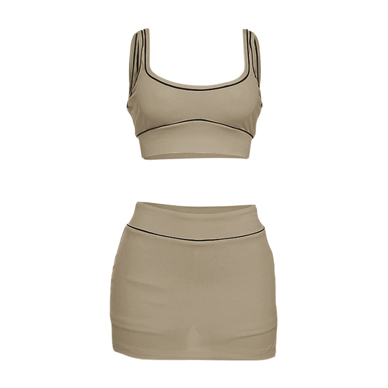 국경을 넘는 유럽과 미국 스타일 2025 봄과 여름 새로운 여성의 섹시한 배꼽 조끼 힙합 스커트 스포츠 레저 세트