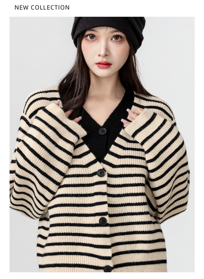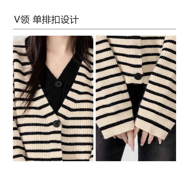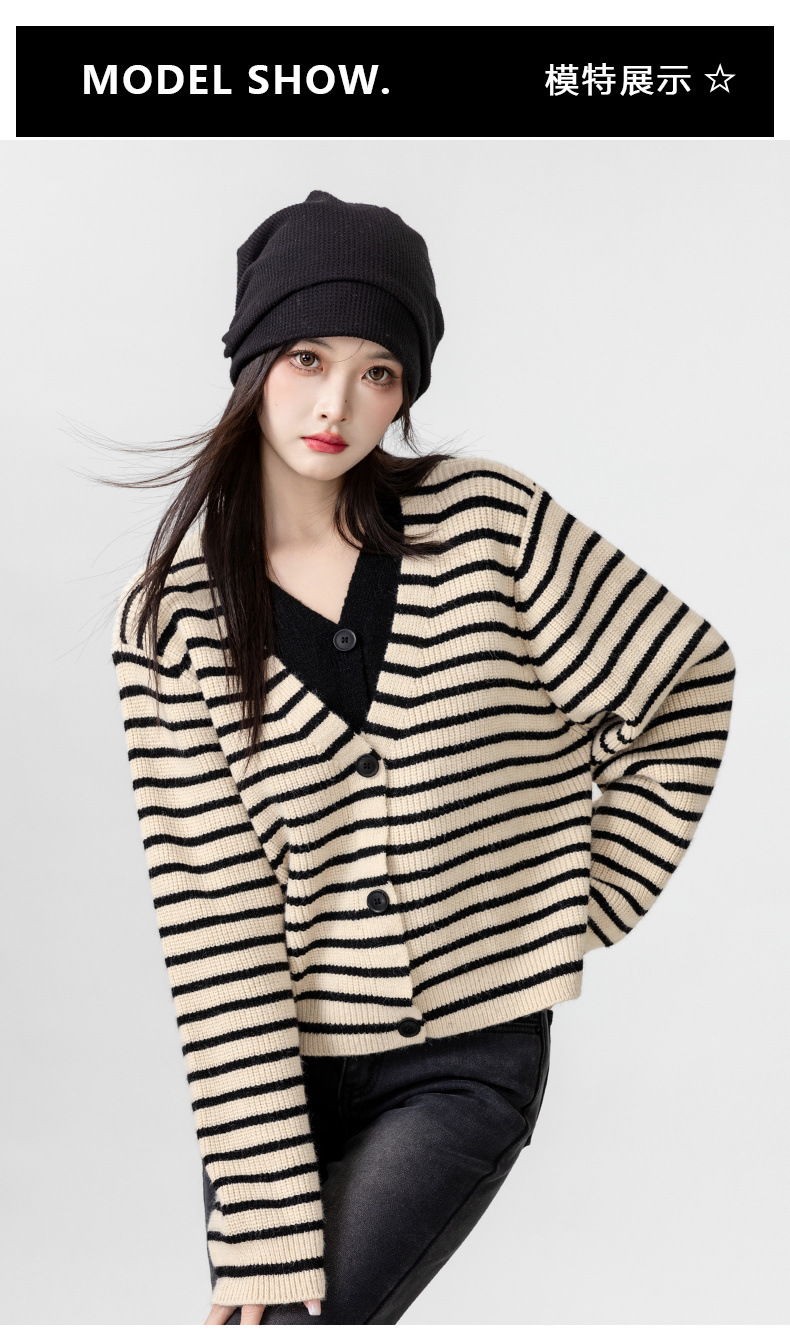 빈티지 스웨터 코트 여성의 봄과 가을 2025 새로운 도착 바느질 가짜 투피스 스트라이프 니트 카디건 외부 쇼트 탑스토어 가기