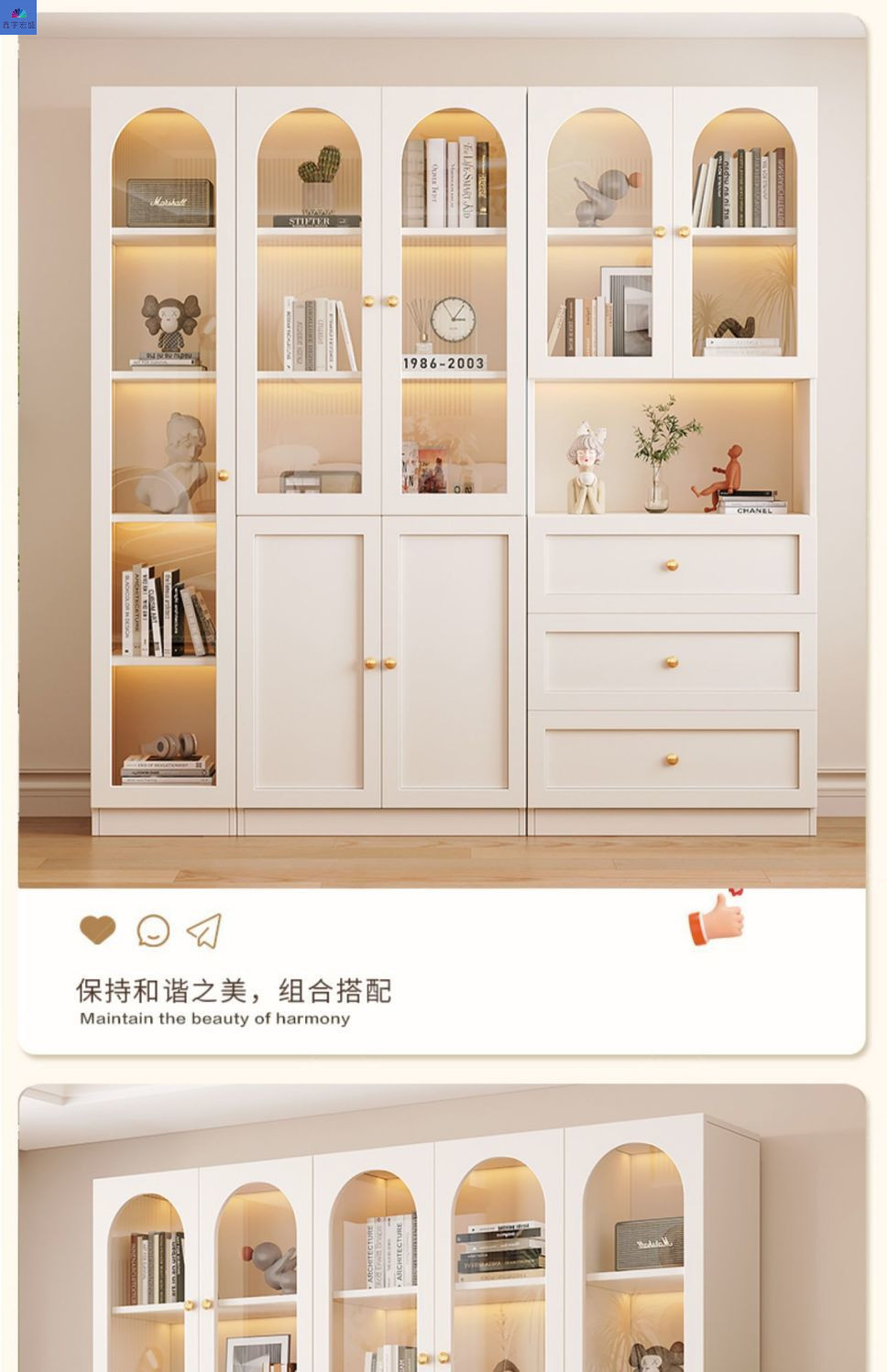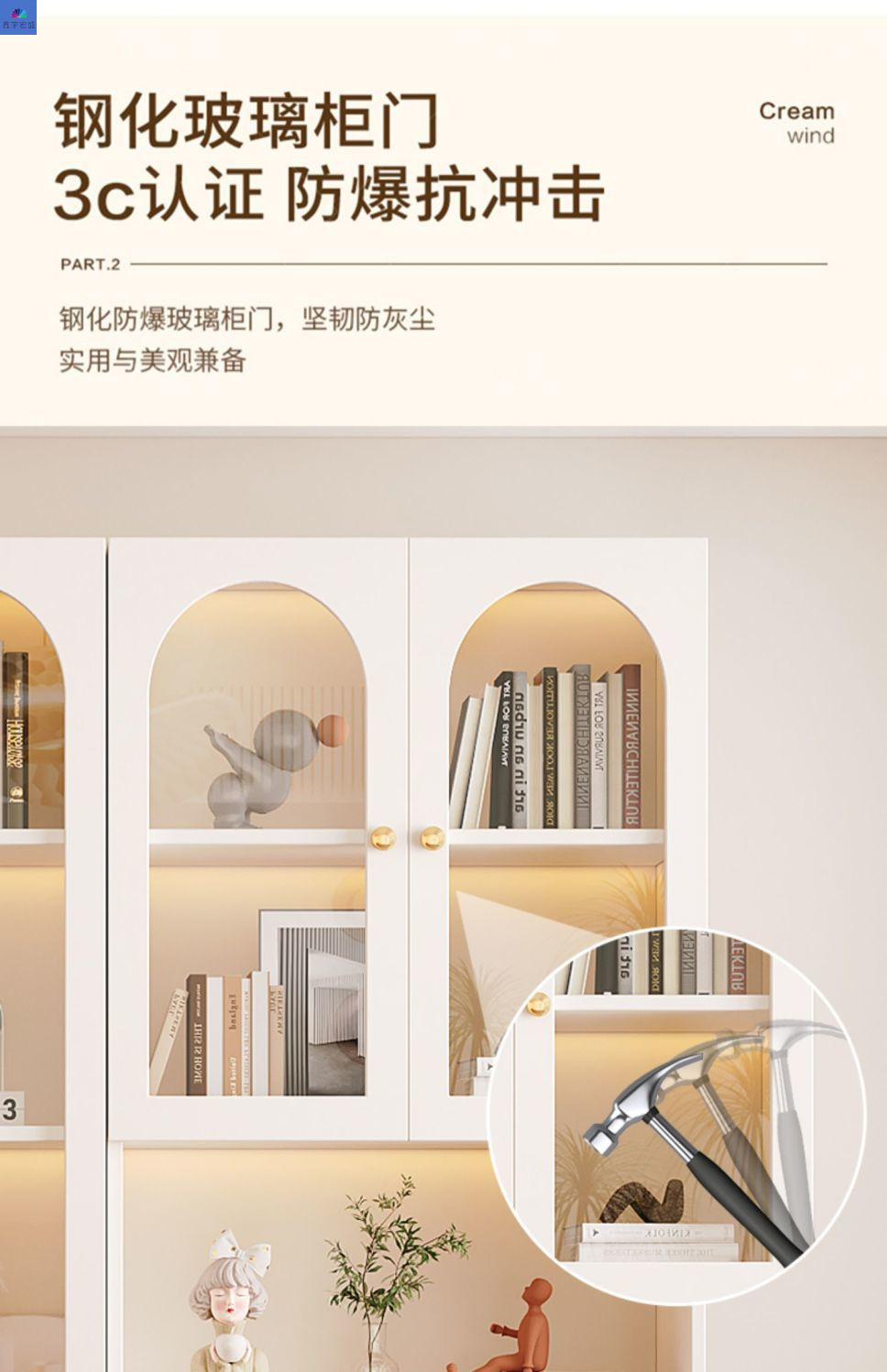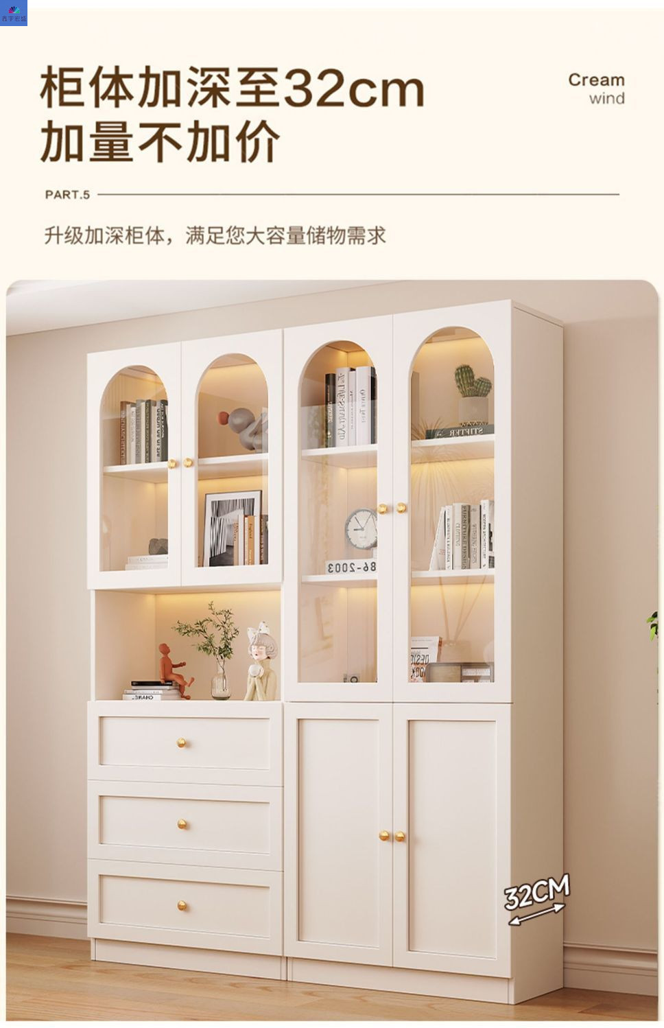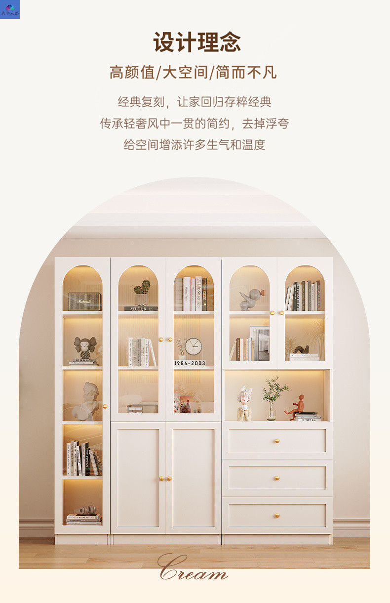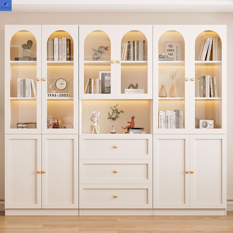 간단한 크림 스타일 단단한 나무 책장 홈 거실 방진 디스플레이 캐비닛 문 조합 캐비닛을 가진 현대 저장 책장