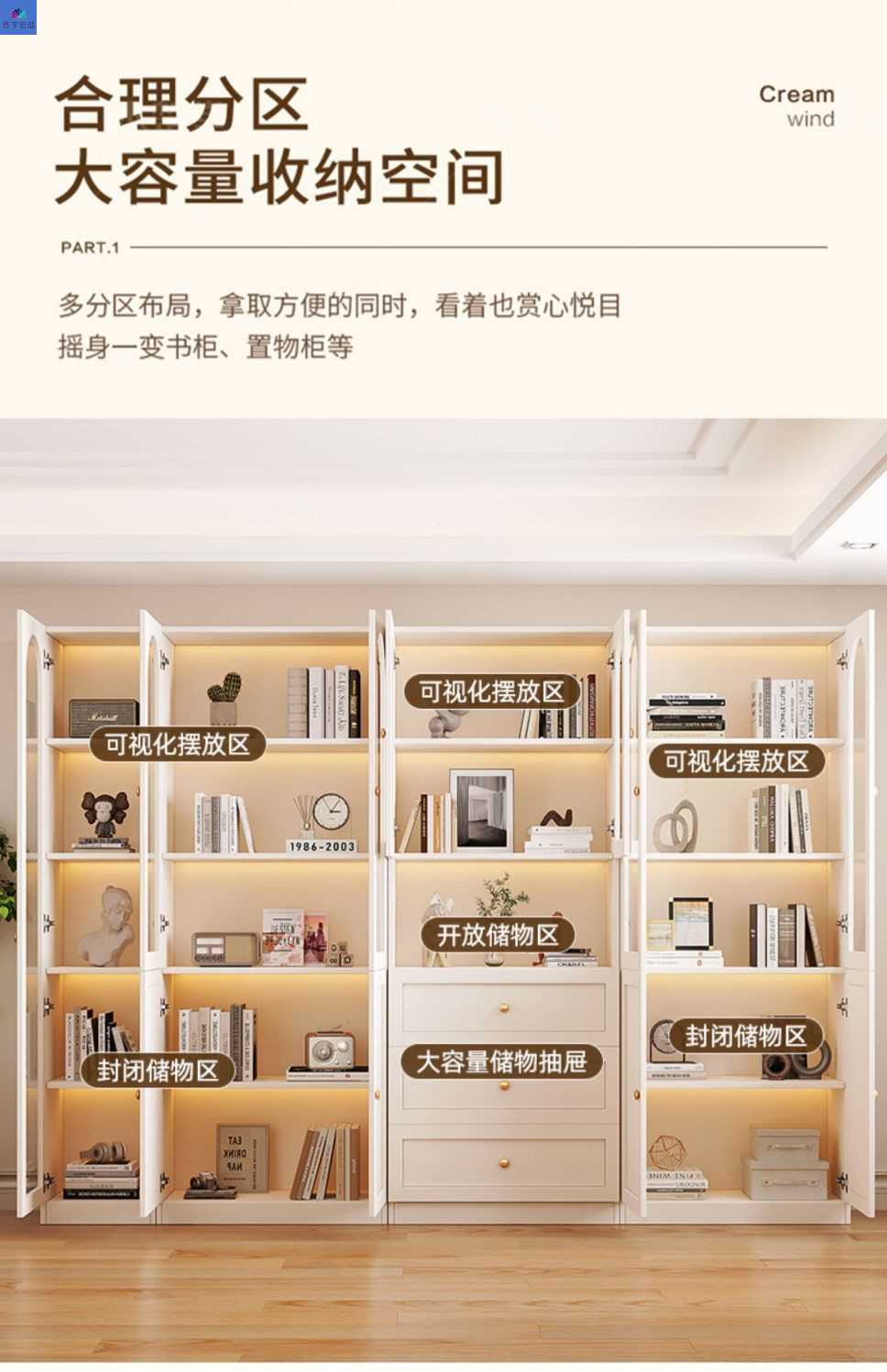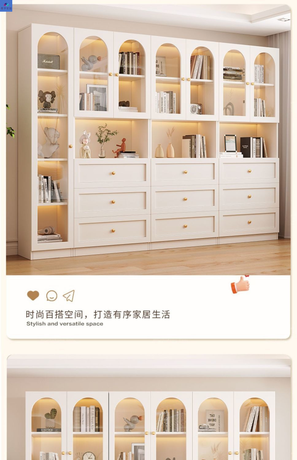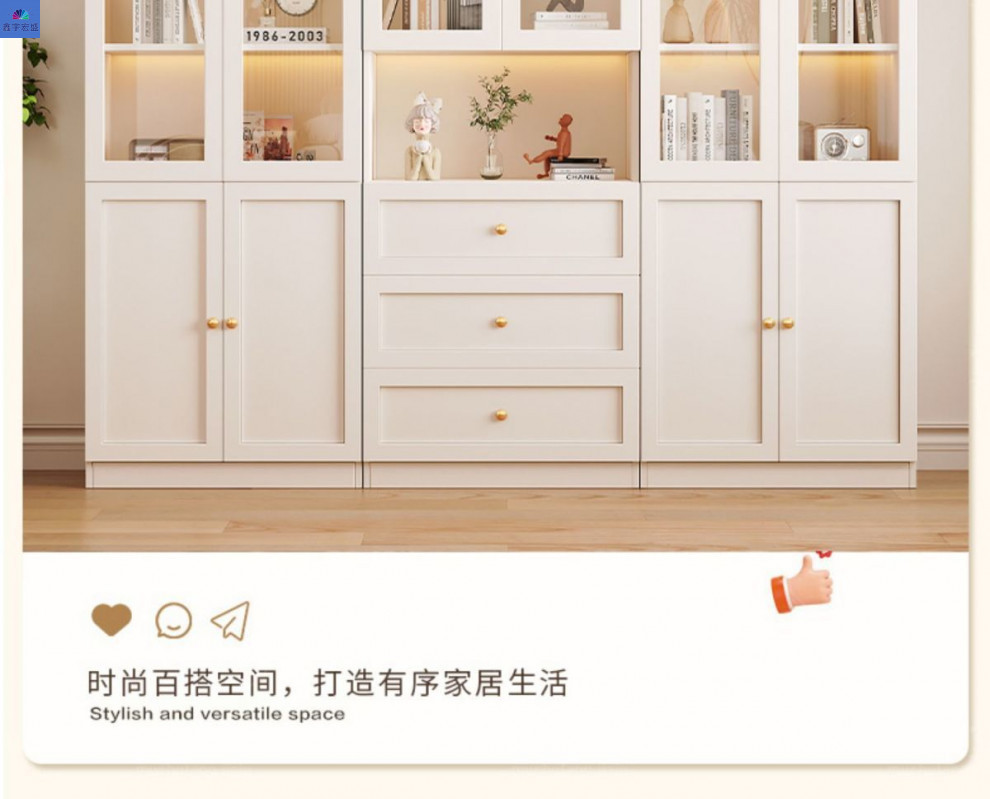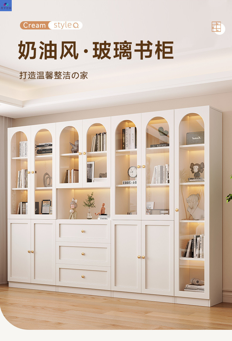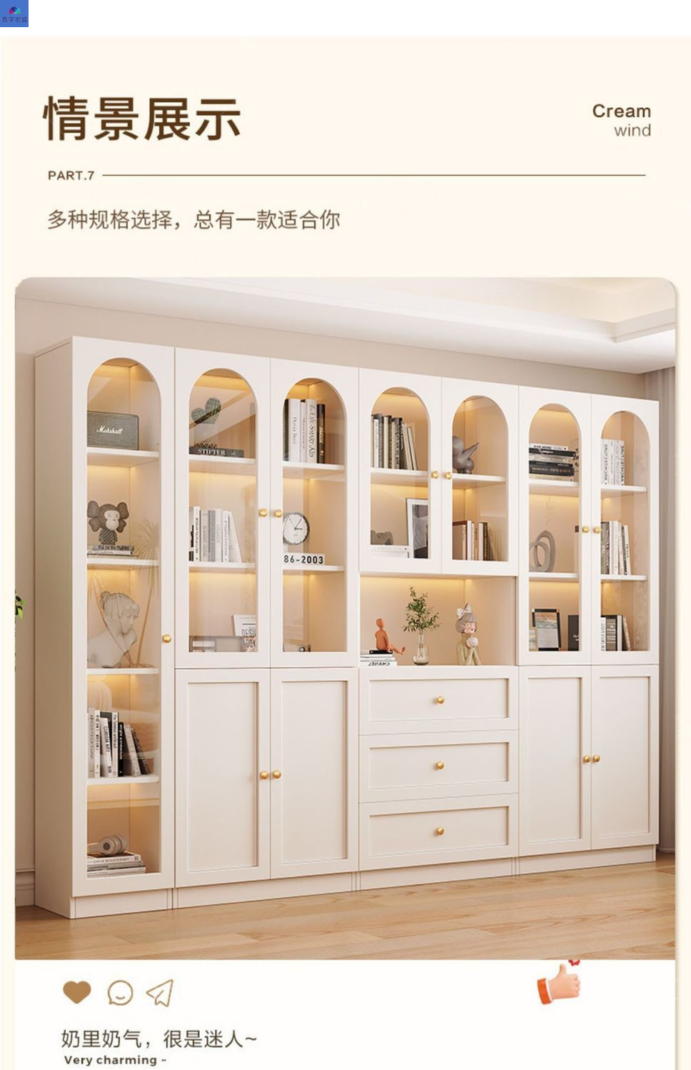 간단한 크림 스타일 단단한 나무 책장 홈 거실 방진 디스플레이 캐비닛 문 조합 캐비닛을 가진 현대 저장 책장