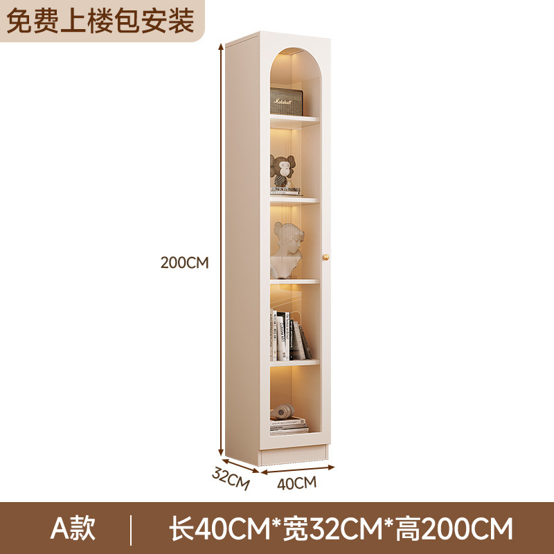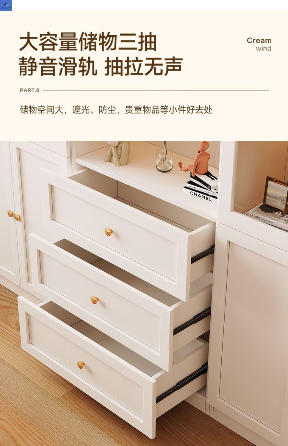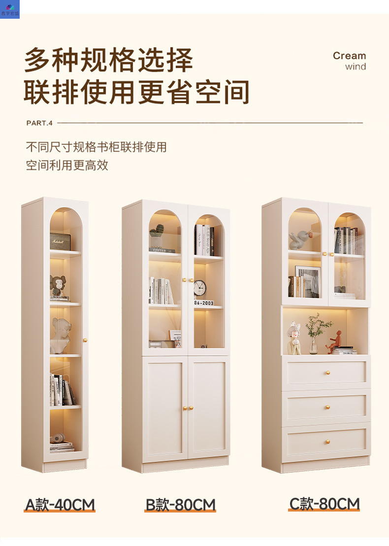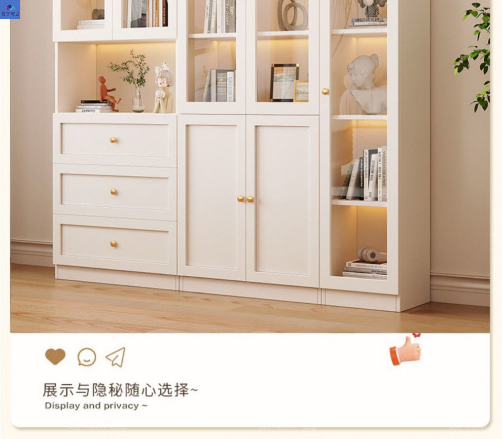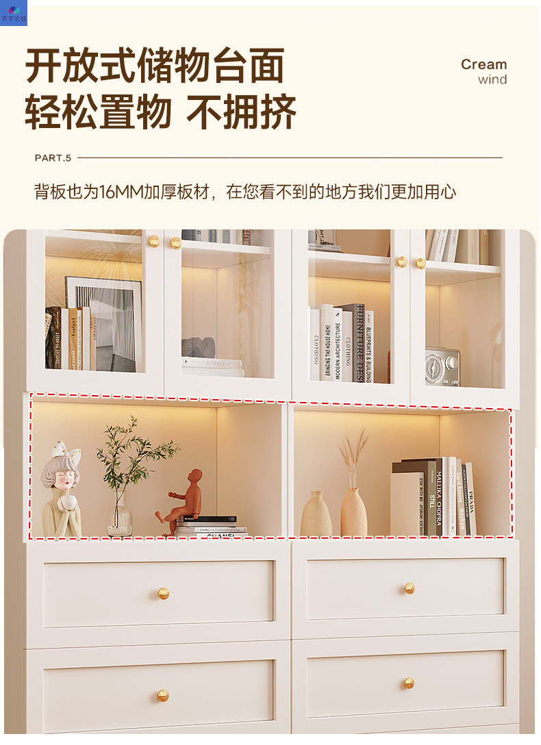 간단한 크림 스타일 단단한 나무 책장 홈 거실 방진 디스플레이 캐비닛 문 조합 캐비닛을 가진 현대 저장 책장