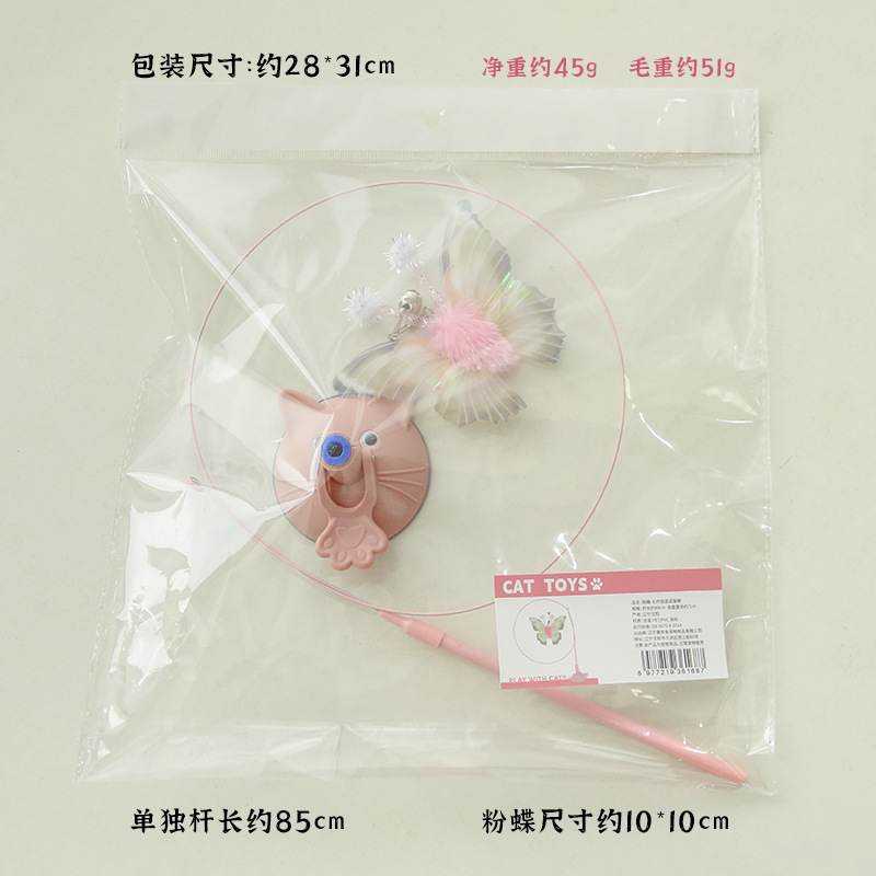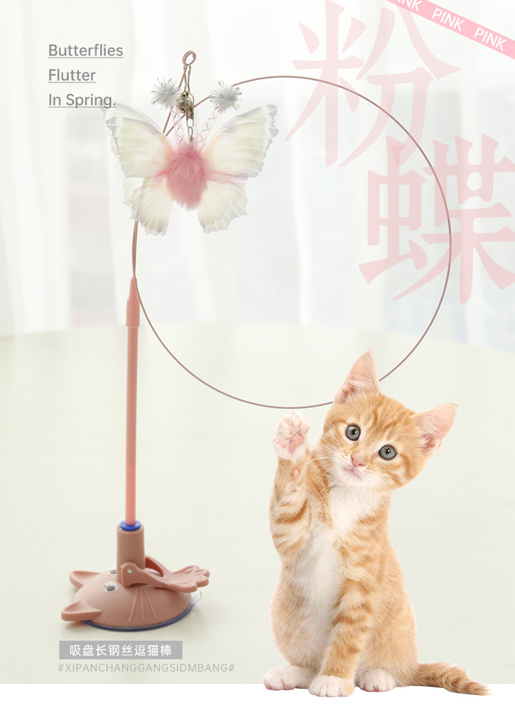 새로운 고양이 장난감 핑크 나비 긴 강철 와이어 빨판 고양이 스틱 길쭉한 고양이 스틱 고양이 스틱 고양이 긁힘 물린 고양이 스틱 도매스토어 가기