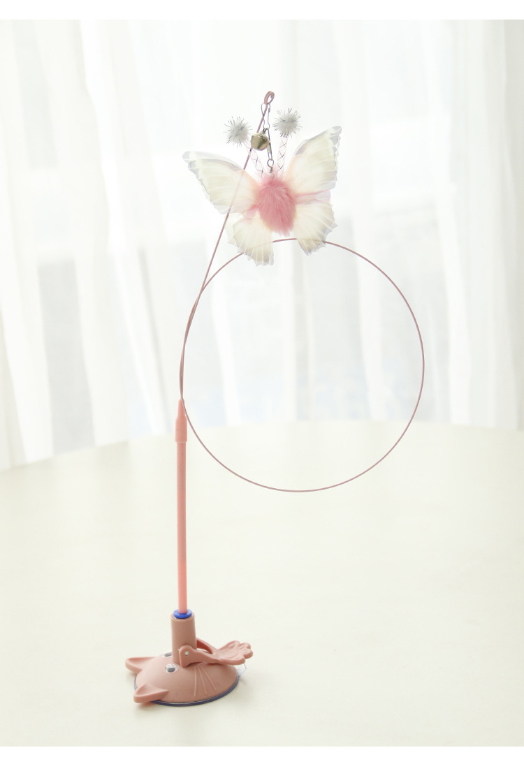 • 핑크 나비 긴 막대 흡입 컵 고양이 놀리는 막대