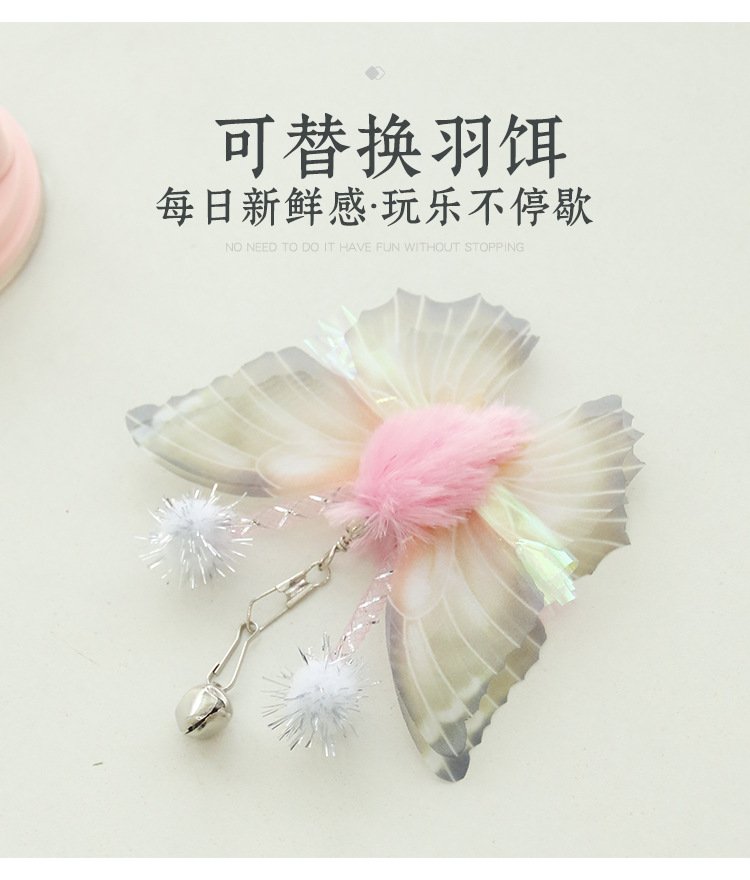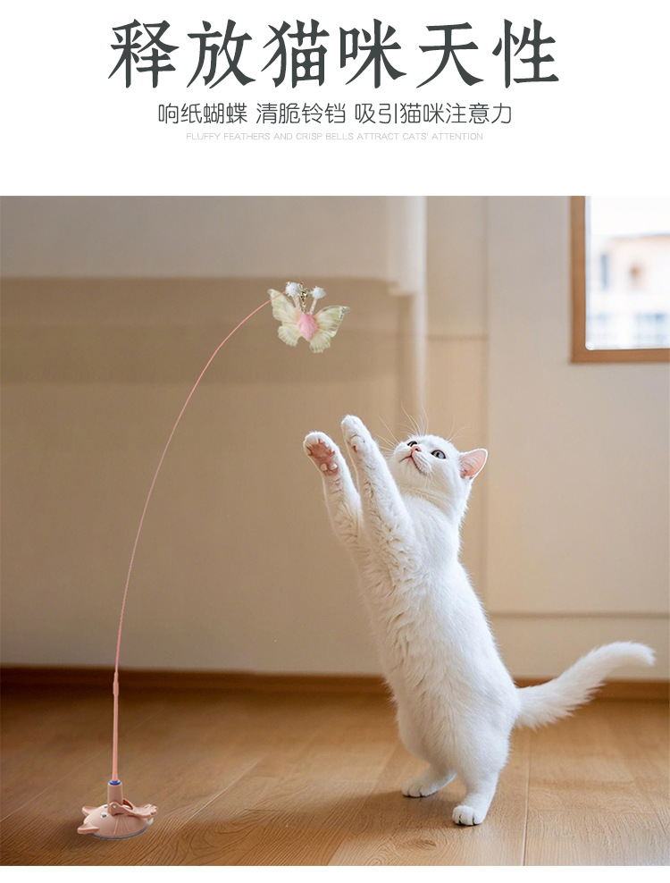 새로운 고양이 장난감 핑크 나비 긴 강철 와이어 빨판 고양이 스틱 길쭉한 고양이 스틱 고양이 스틱 고양이 긁힘 물린 고양이 스틱 도매