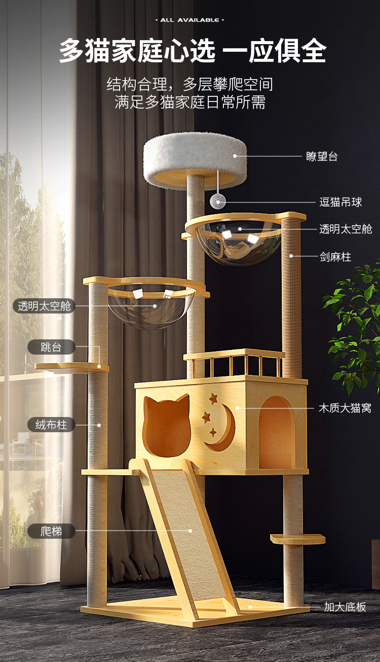 고양이 등반 프레임 고양이 둥지 고양이 나무 통합 대형 Tongtianzhu 나무 고양이 프레임 공간 캡슐 점프 플랫폼 장난감 고양이 용품스토어 가기