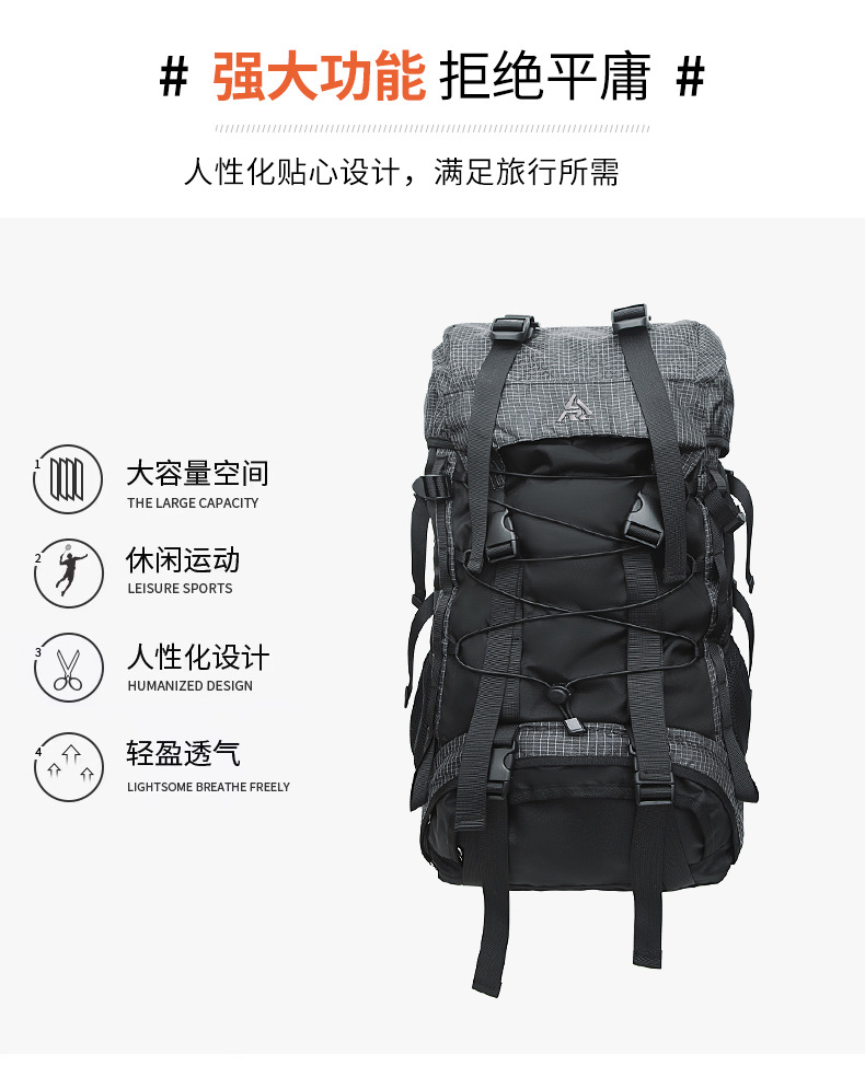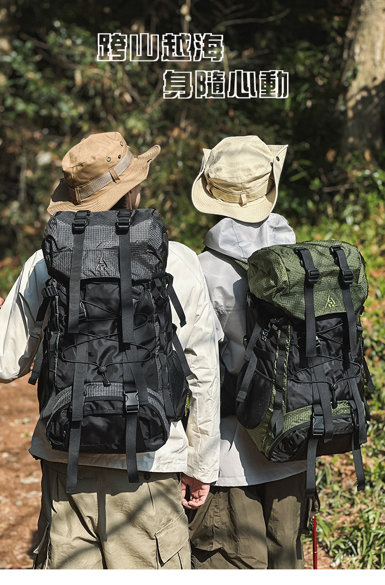 새로운 대용량 등산 가방 55L 야외 배낭 방수 캠핑 배낭 장거리 하이킹 배낭 착용 방지