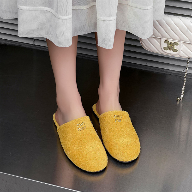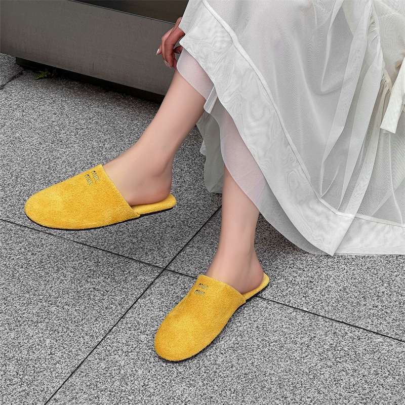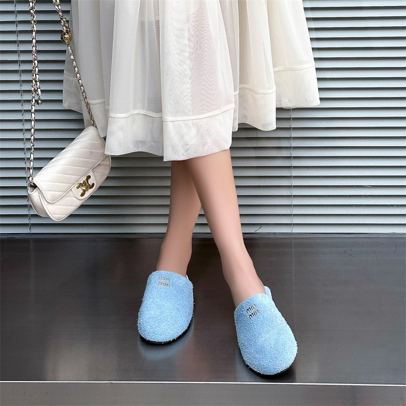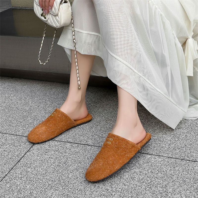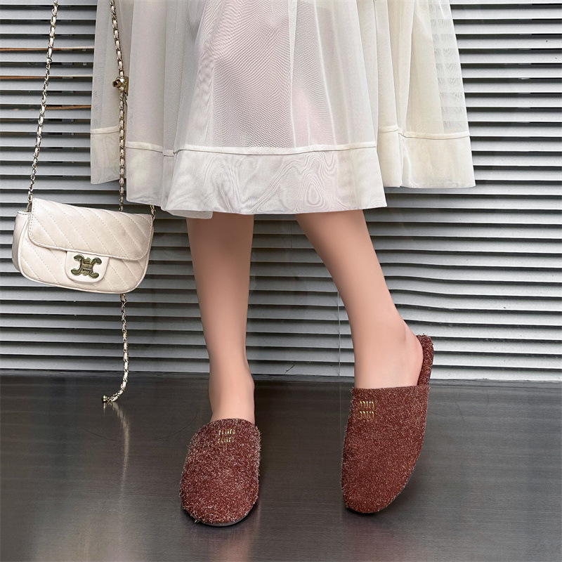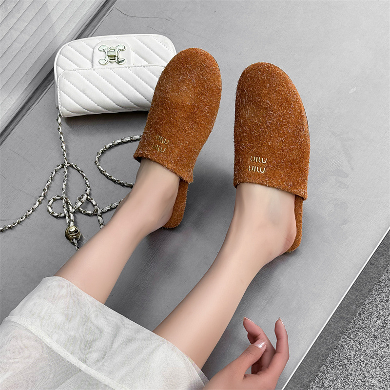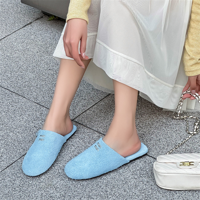 나비 Aojia Maomao 슬리퍼 여성용 의상 하이 엔드 편지 양모 두꺼운 하단 반 슬리퍼 캐주얼 올 매치 한 단어 코튼 슬리퍼스토어 가기