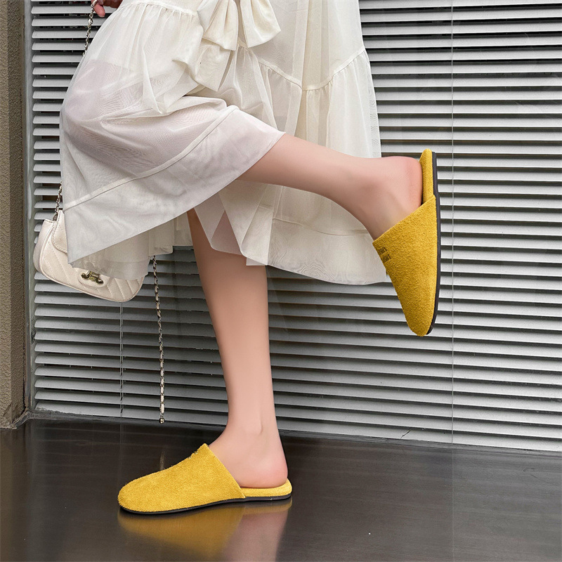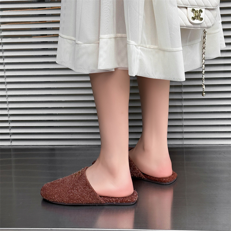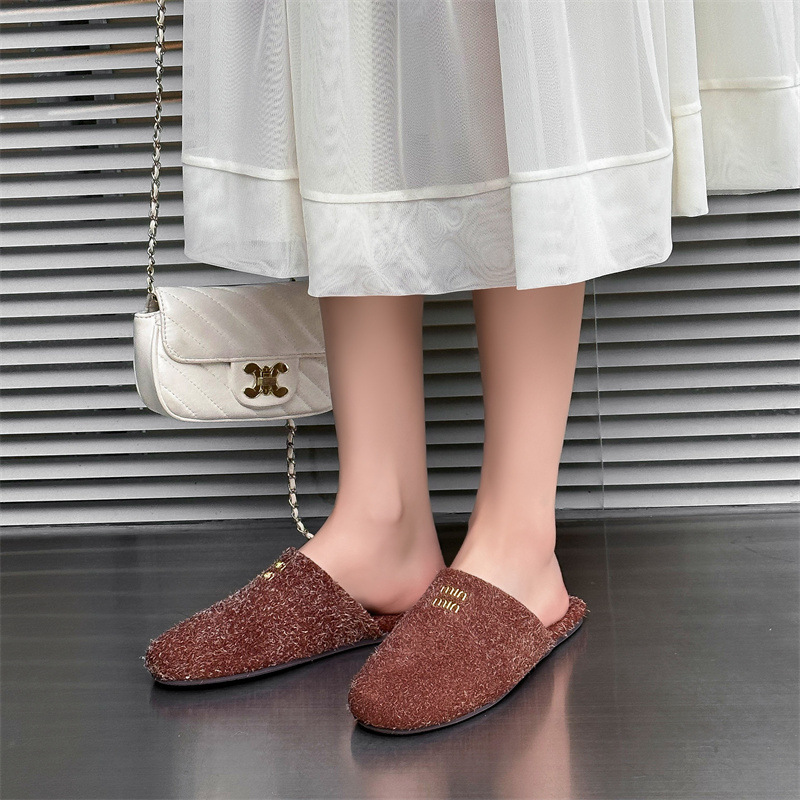나비 Aojia Maomao 슬리퍼 여성용 의상 하이 엔드 편지 양모 두꺼운 하단 반 슬리퍼 캐주얼 올 매치 한 단어 코튼 슬리퍼