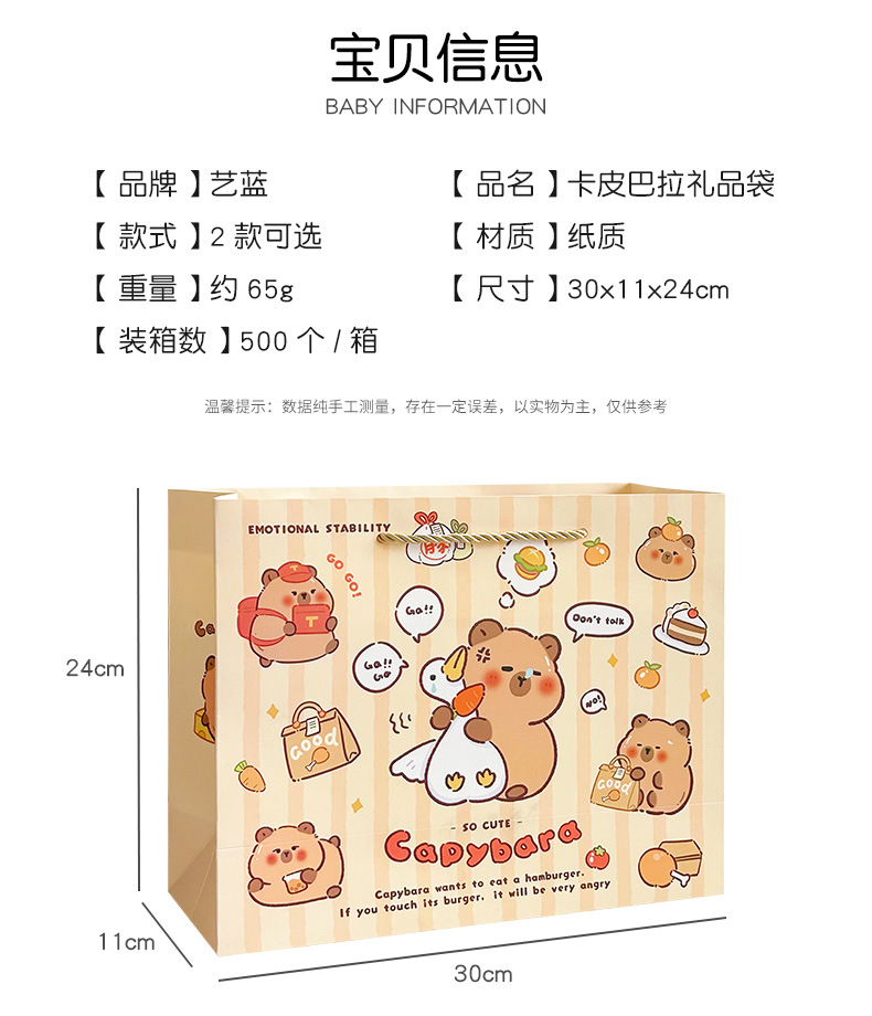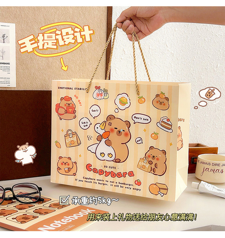 Capibala 선물 가방 귀여운 capybara 휴대용 선물 가방 창조적 인 디저트 우유 티백 만화 쇼핑 가방 도매스토어 가기