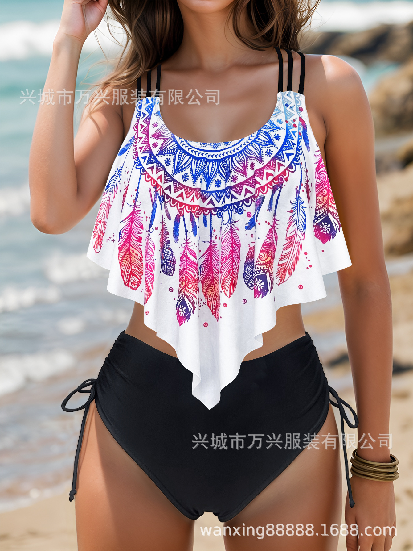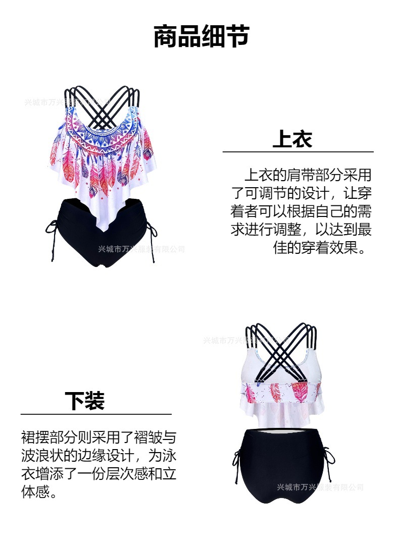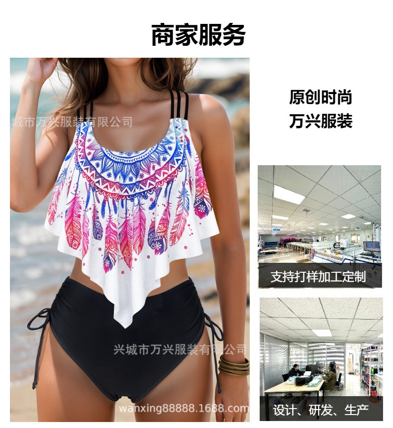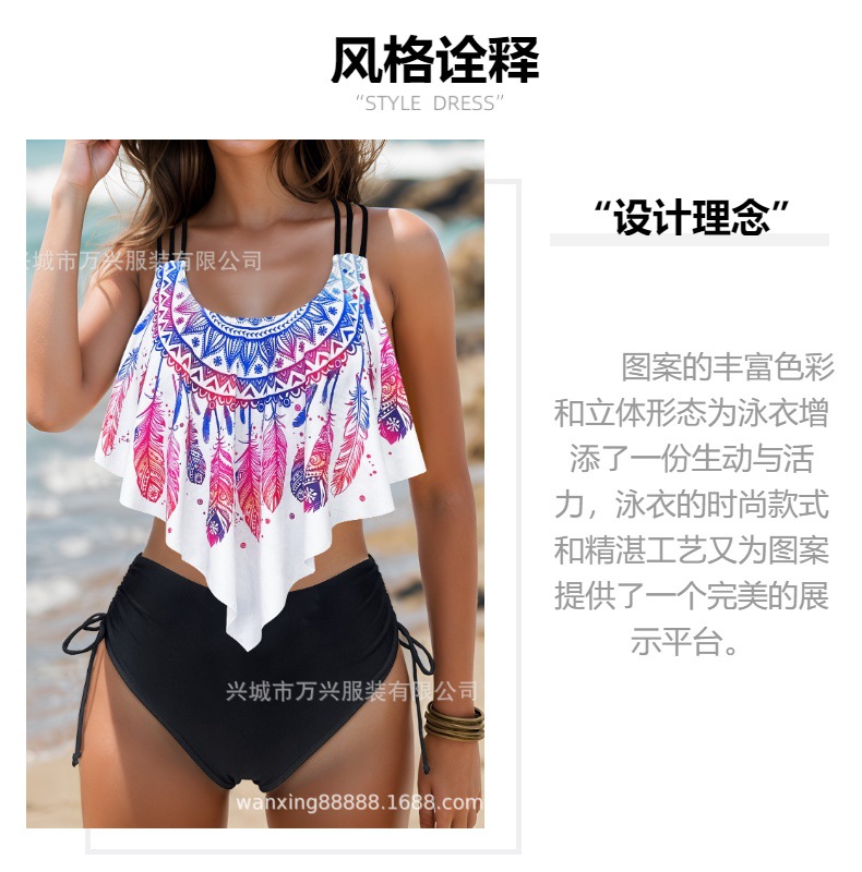 섹시한 3 점 비키니 크로스 벨트 푸시 업 스플릿 하이 포크 2025 새로운 인쇄 수영복 여성용 스파