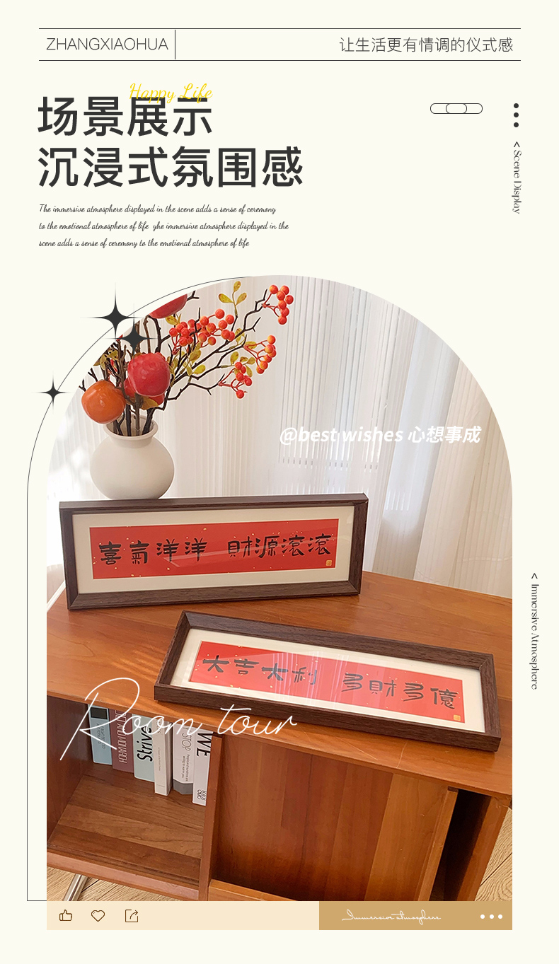 새로운 중국 서예 수평 사진 프레임 화가 뚱뚱한 집 Runxi Qingfeng 텍스트 테이블 그림 거실 장식 장식품