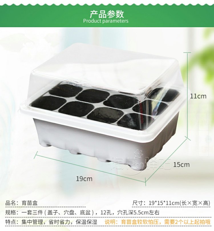 12 그리드 묘목 판 열 보존 및 수분 전달 새로운 플라스틱 모종 상자 다육 파종 잎 삽입 묘목 상자 3 종 세트