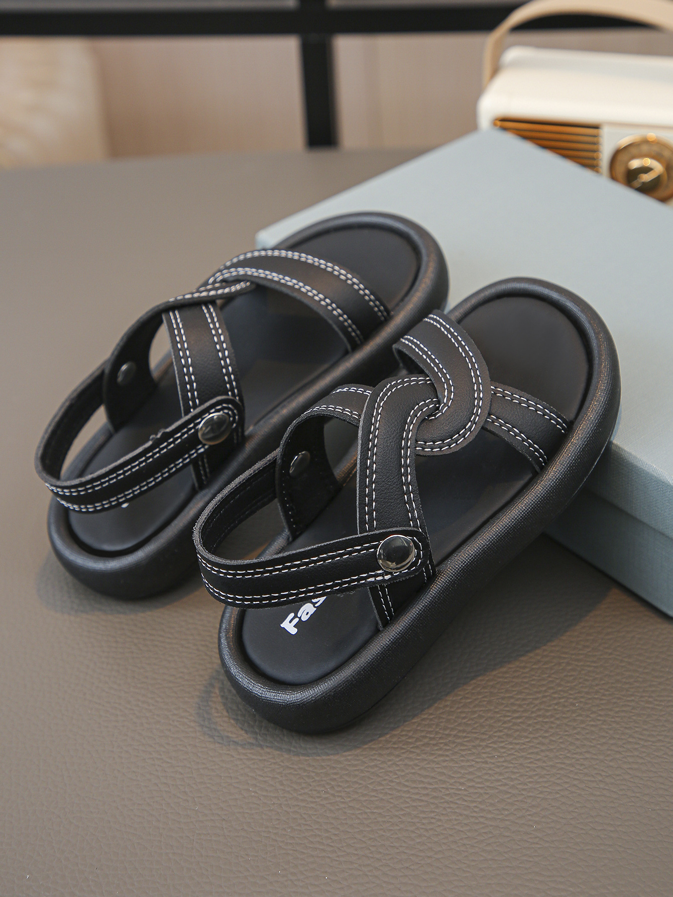 소녀 크로스 스트랩 샌들 2025 여름 새로운 벨크로 로마 샌들 보켄 플랫 샌들 트렌디 슈즈스토어 가기