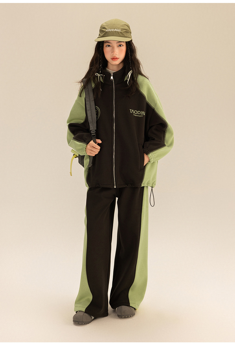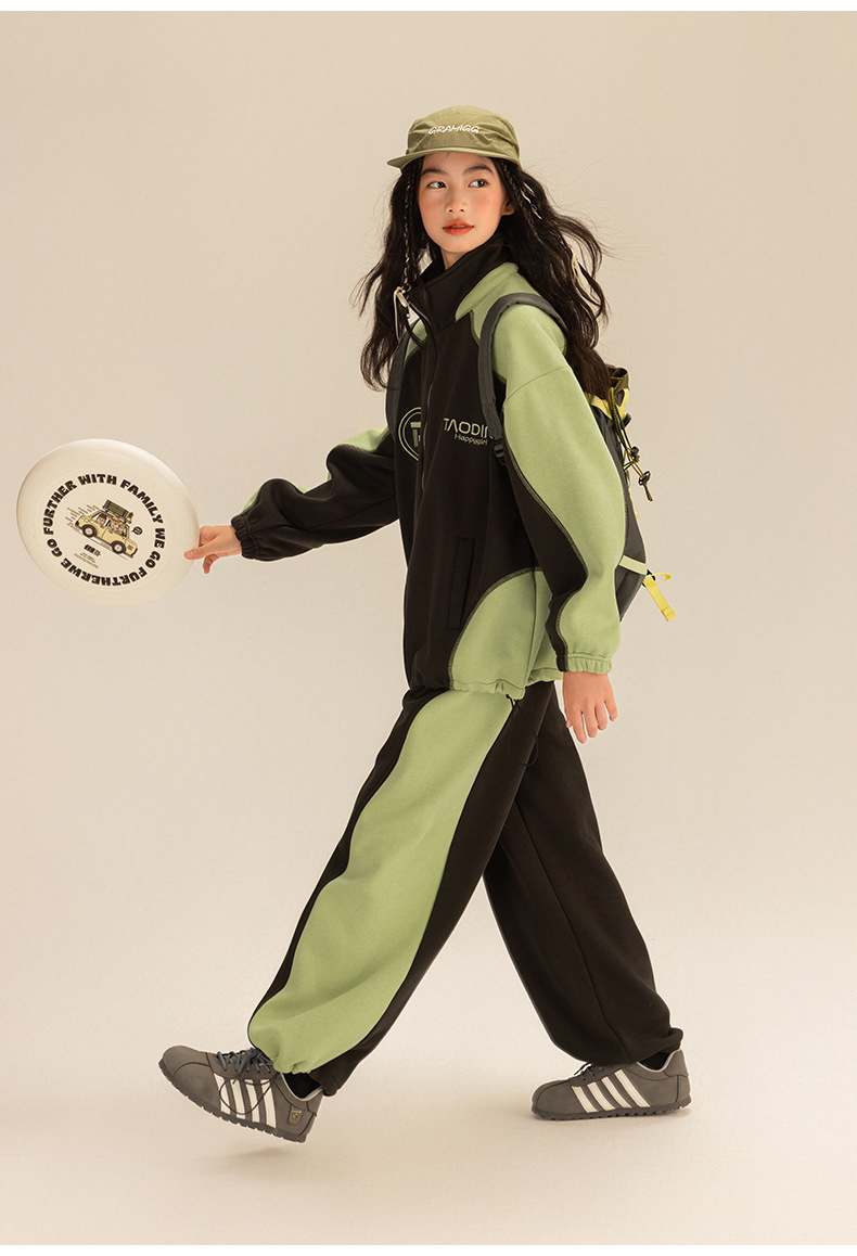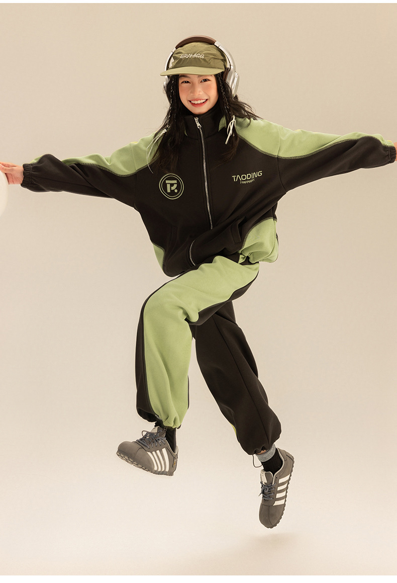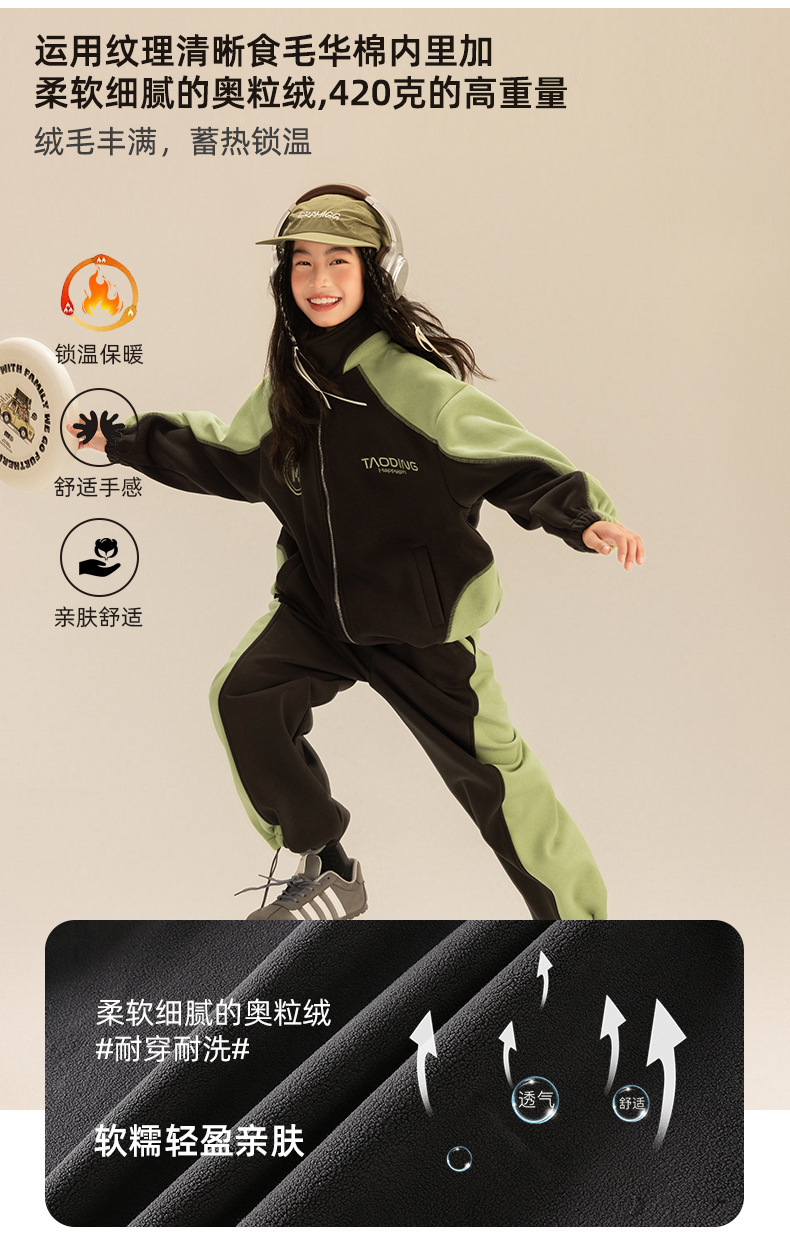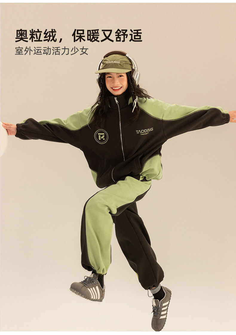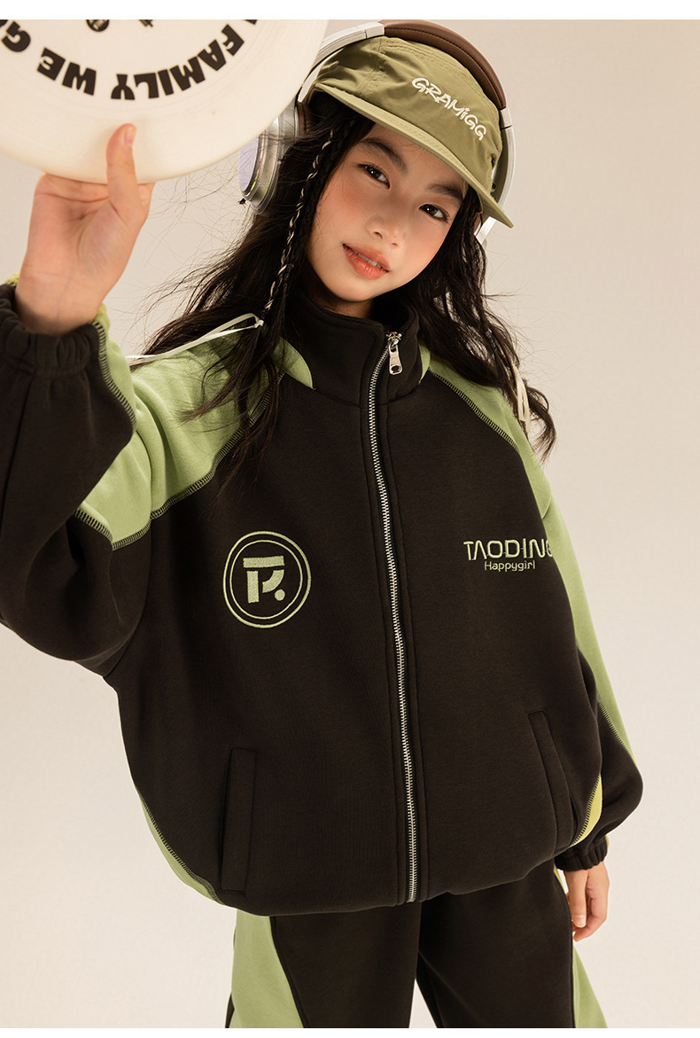 Amoy 소녀 세트 겨울 새로운 기모 색상 일치 올림픽 곡물 벨벳 큰 어린이 자수 따뜻한 스웨터 투피스 세트
