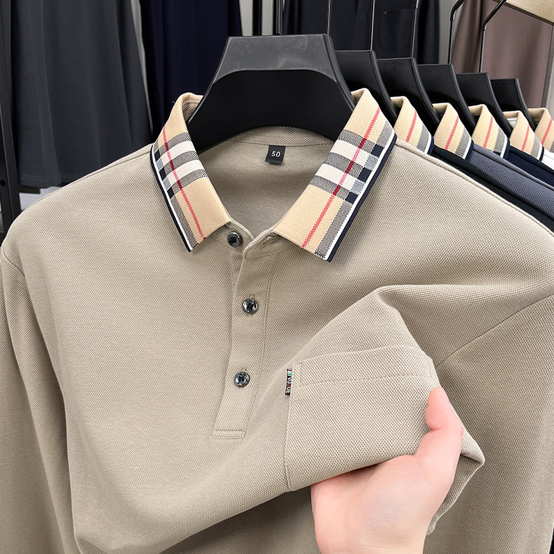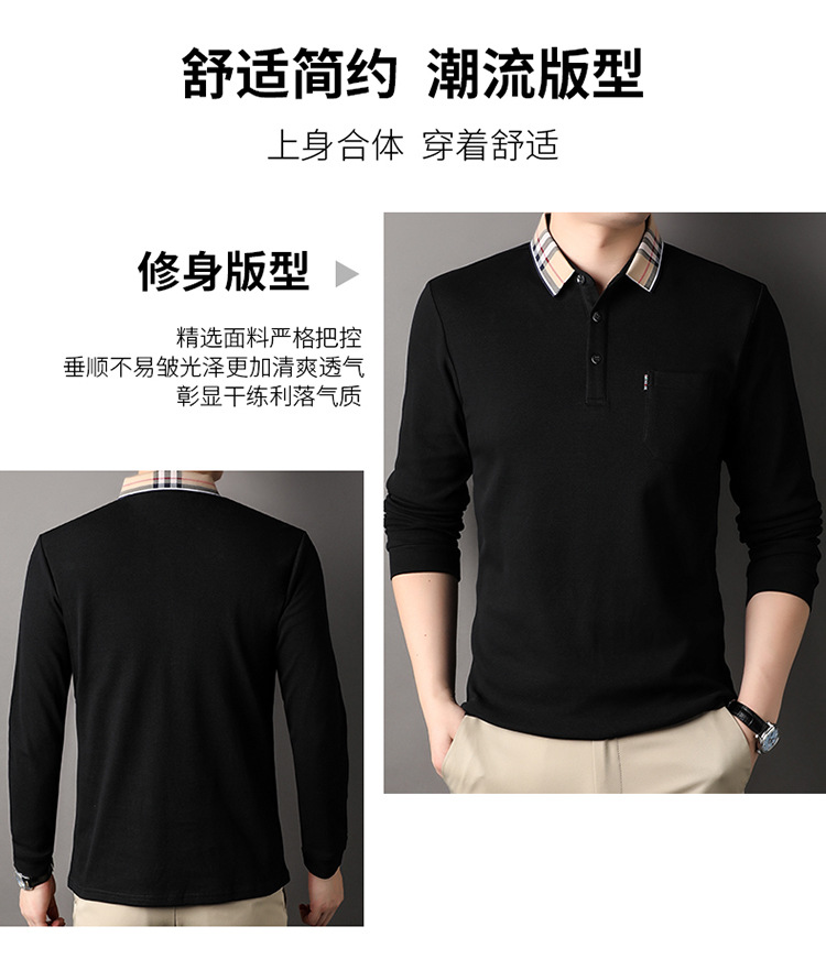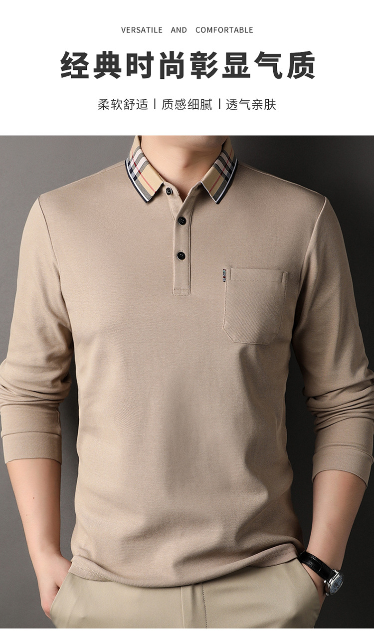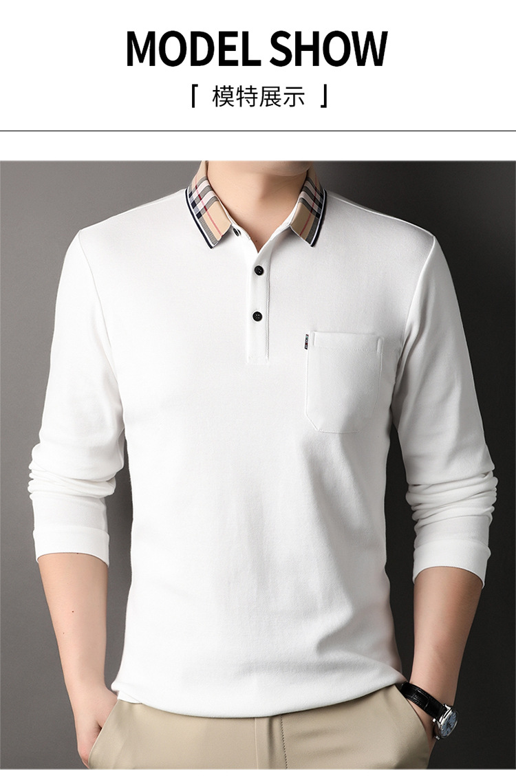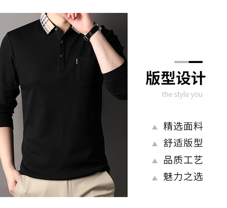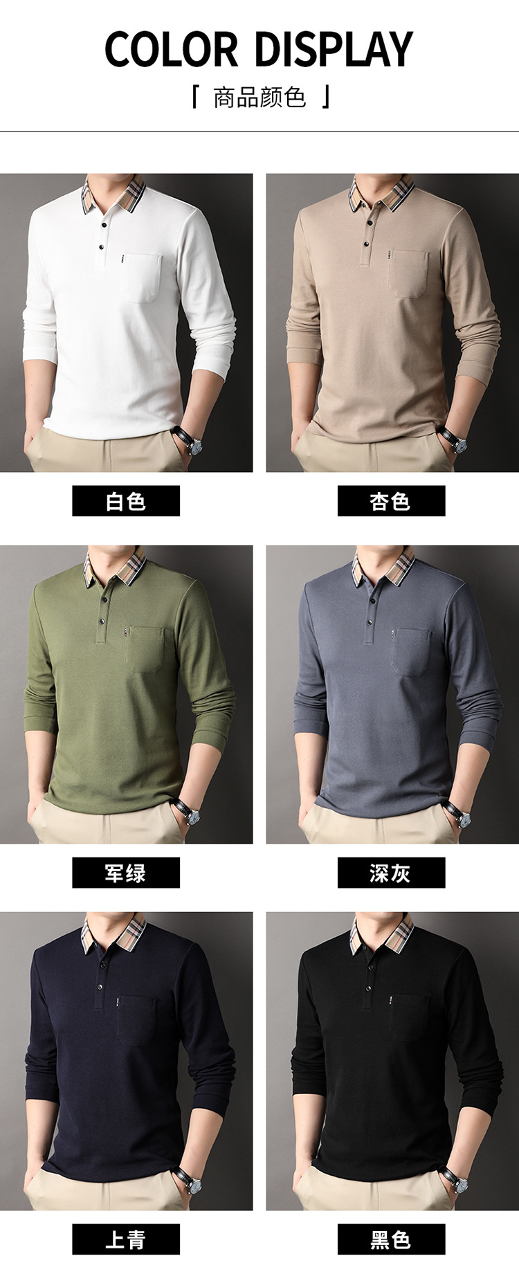 순수 코튼 남성용 긴팔 티셔츠 옷깃 봄과 가을 캐주얼 남성용 루즈베이스 티셔츠 남성용 리얼 포켓 탑스토어 가기