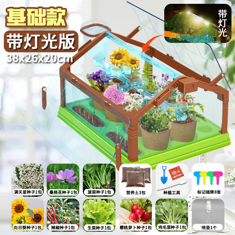 Sun Room 어린이 심기 과학 및 교육 작은 실험 미니 하우스 DIY 식물 야채 부모-어린이 대화 형 장난감 세트스토어 가기