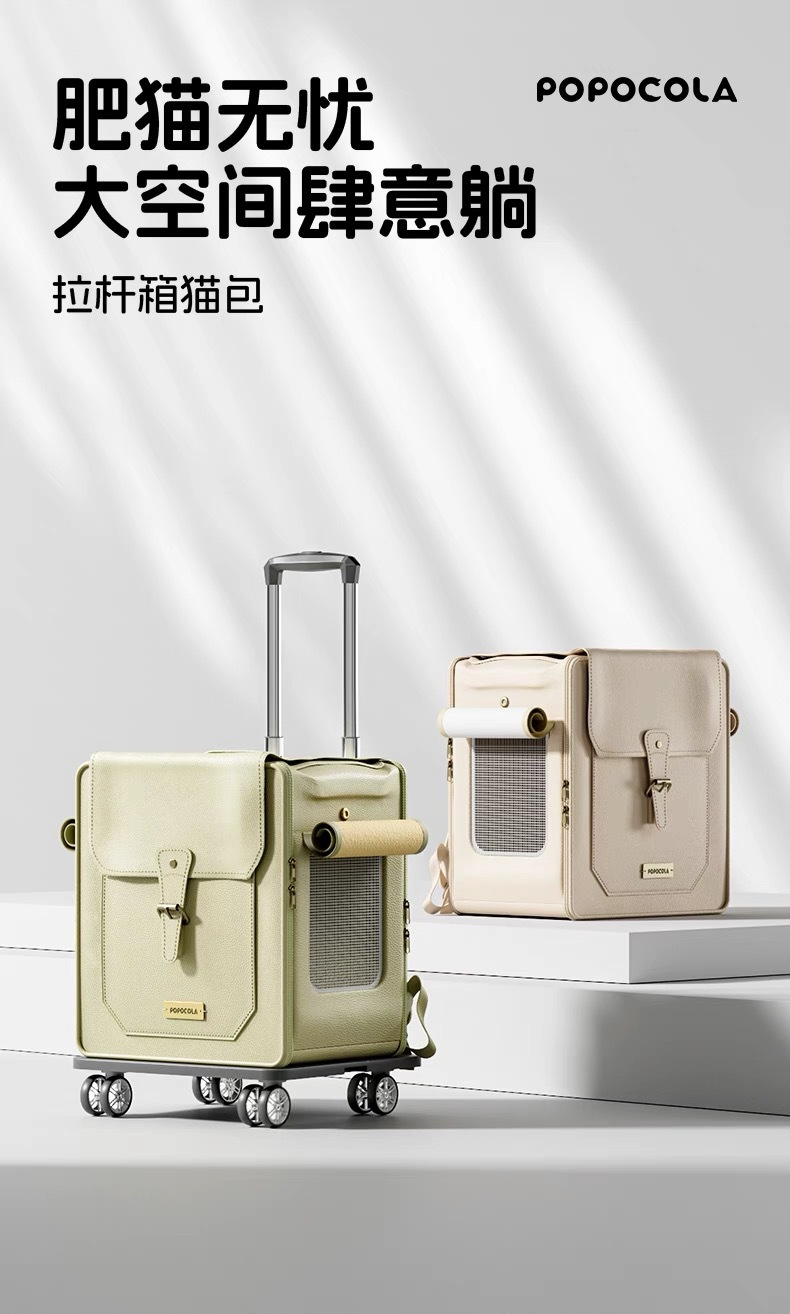 • PU가죽 트롤리 케이스 고양이가방 (베이지)