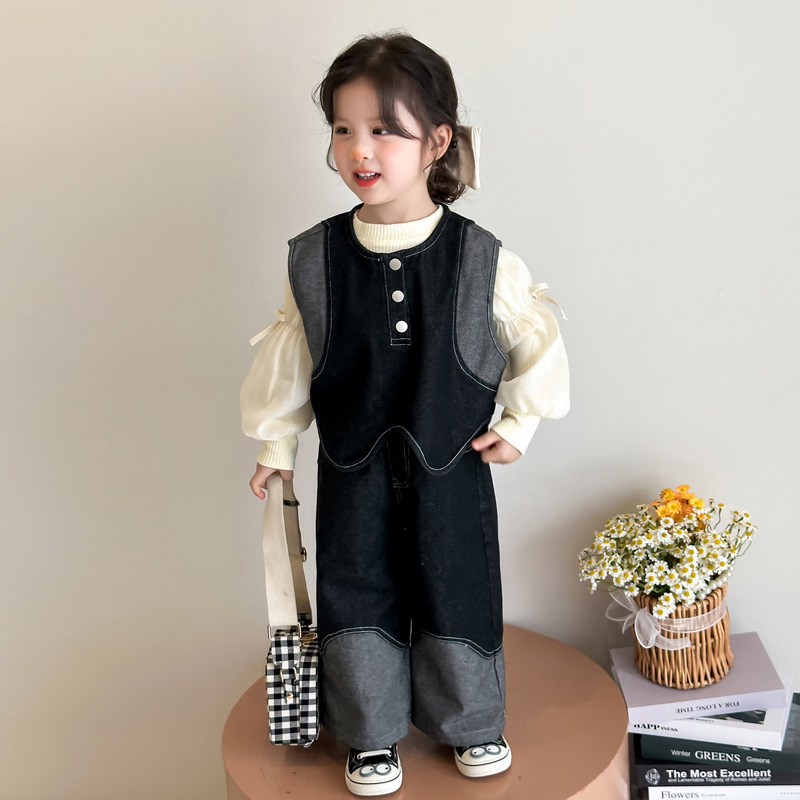 여자 한국 봄 의류 세트 2025 새로운 스타일 귀여운 데님 조끼 여성 스트레이트 팬츠 그물 레드 3 피스 세트