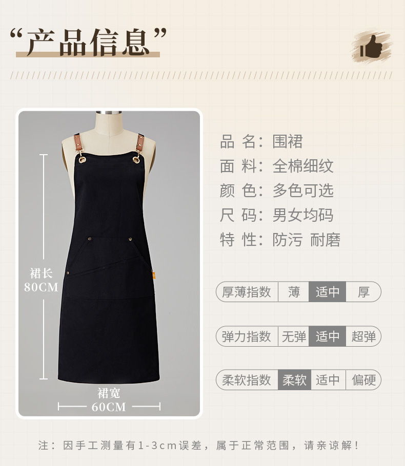交叉带围裙厂家LOGO厨房通用餐厅奶茶店围腰现货