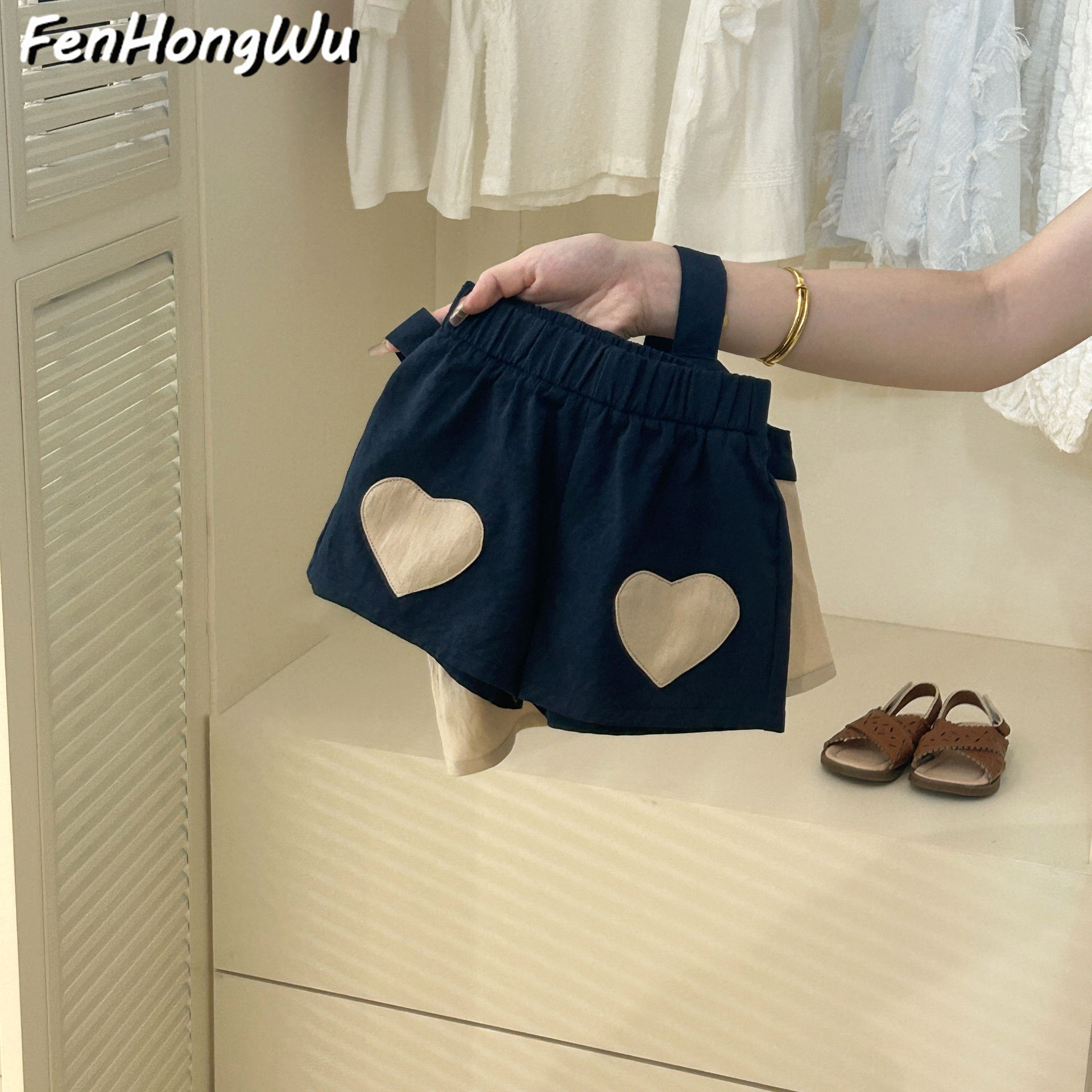 한국 걸스 여름 슬링 러브 반바지 세트 아기 소녀 우아한 유행 쿨 투피스 유행 세트스토어 가기