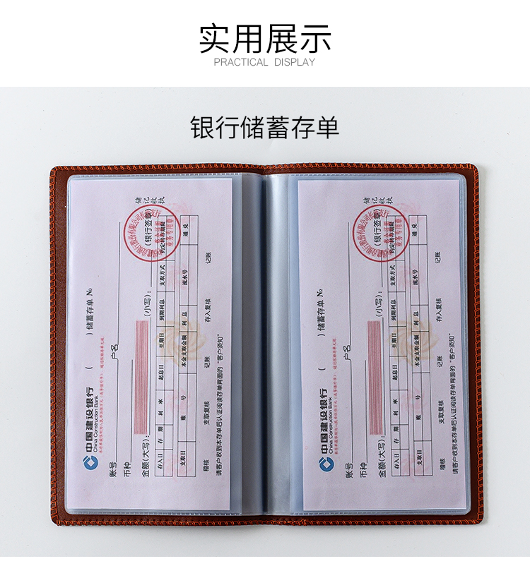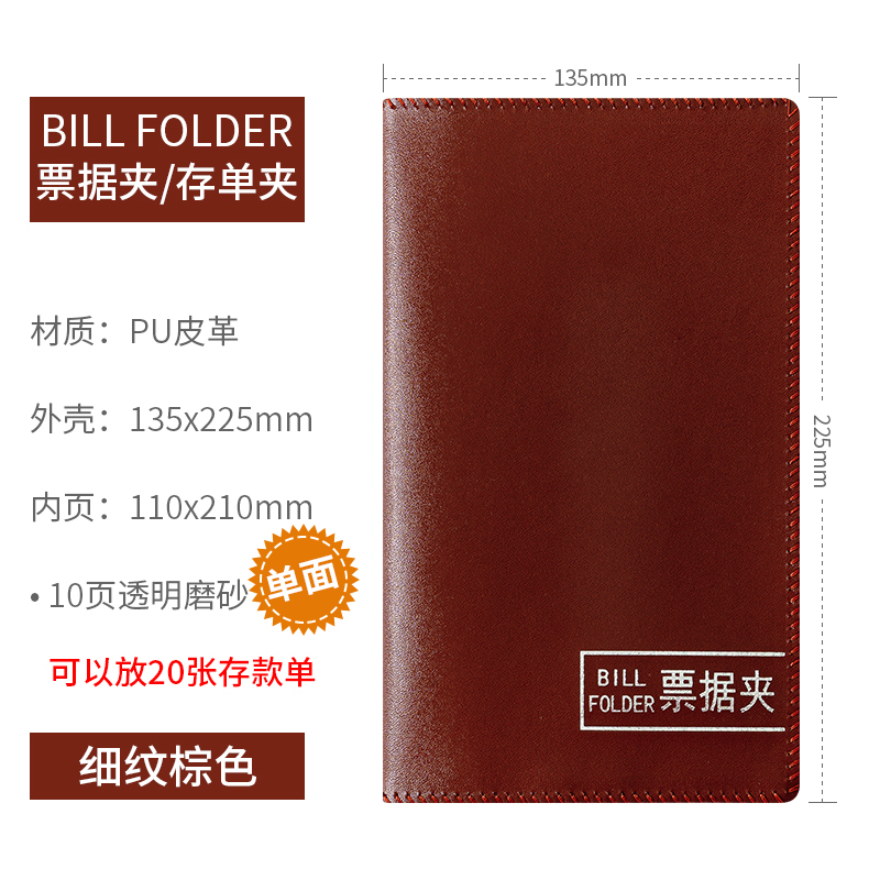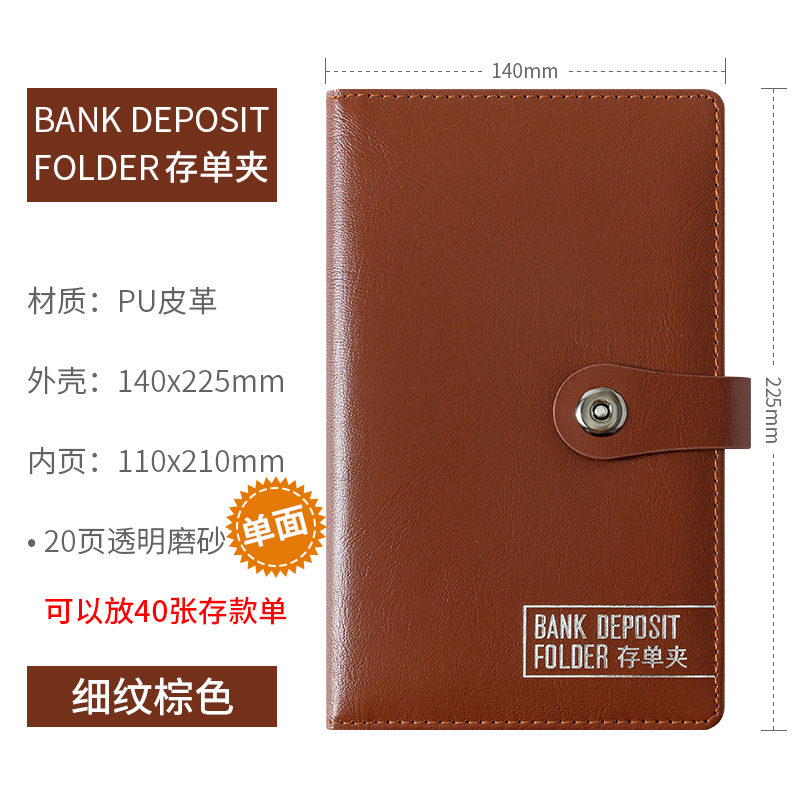 • 갈색 지폐 홀더에는 10페이지에 보증금 20장을 담을 수 있습니다(소프트 커버).